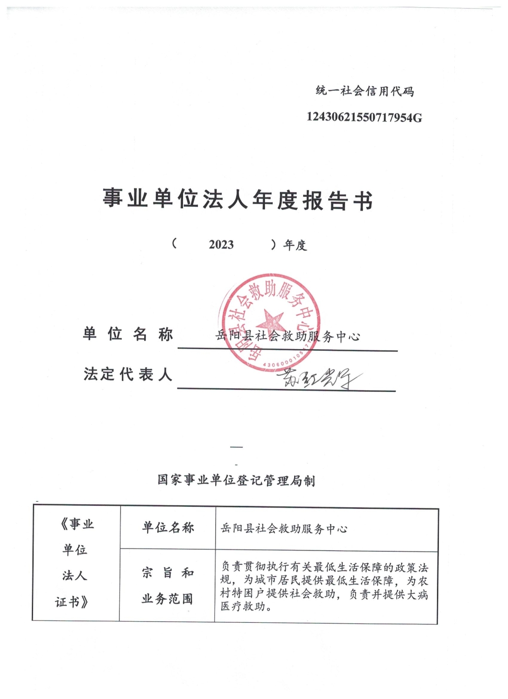 岳阳县社会救助服务中心2023年度报告书
