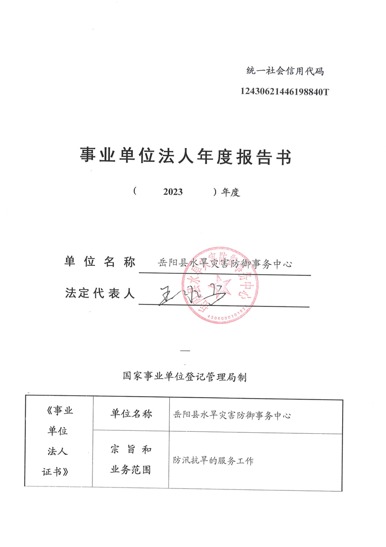 岳阳县水旱灾害防御事务中心2023年度报告书