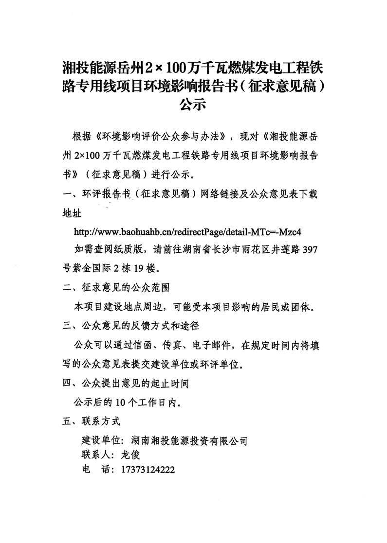 湘投能源岳州2×100万千瓦燃煤发电工程铁路专用线项目环境影响报告书(征求意见稿)