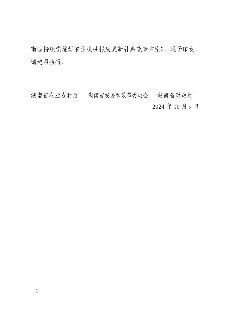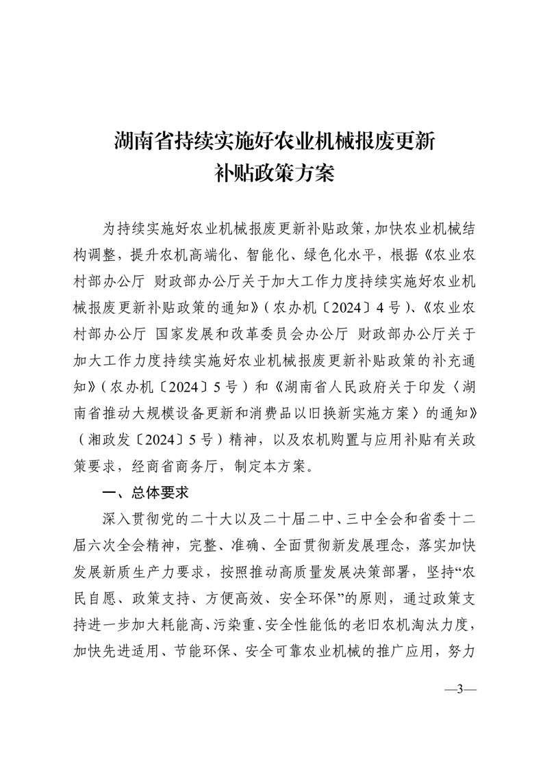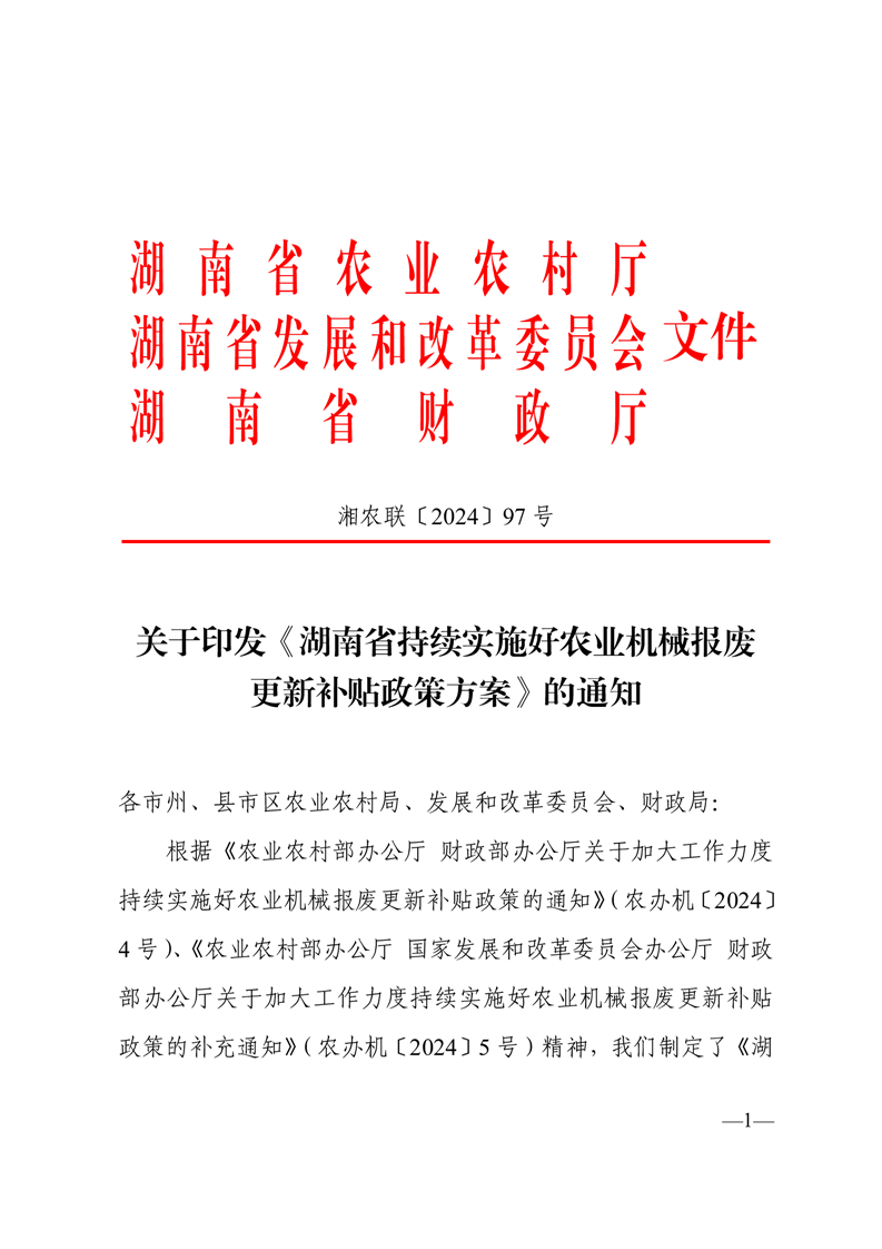 湘农联〔2024〕97号—关于印发《湖南省持续实施好农业机械报废更新补贴政策方案》的通知