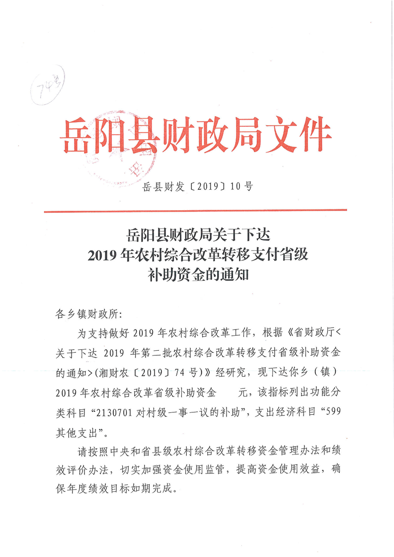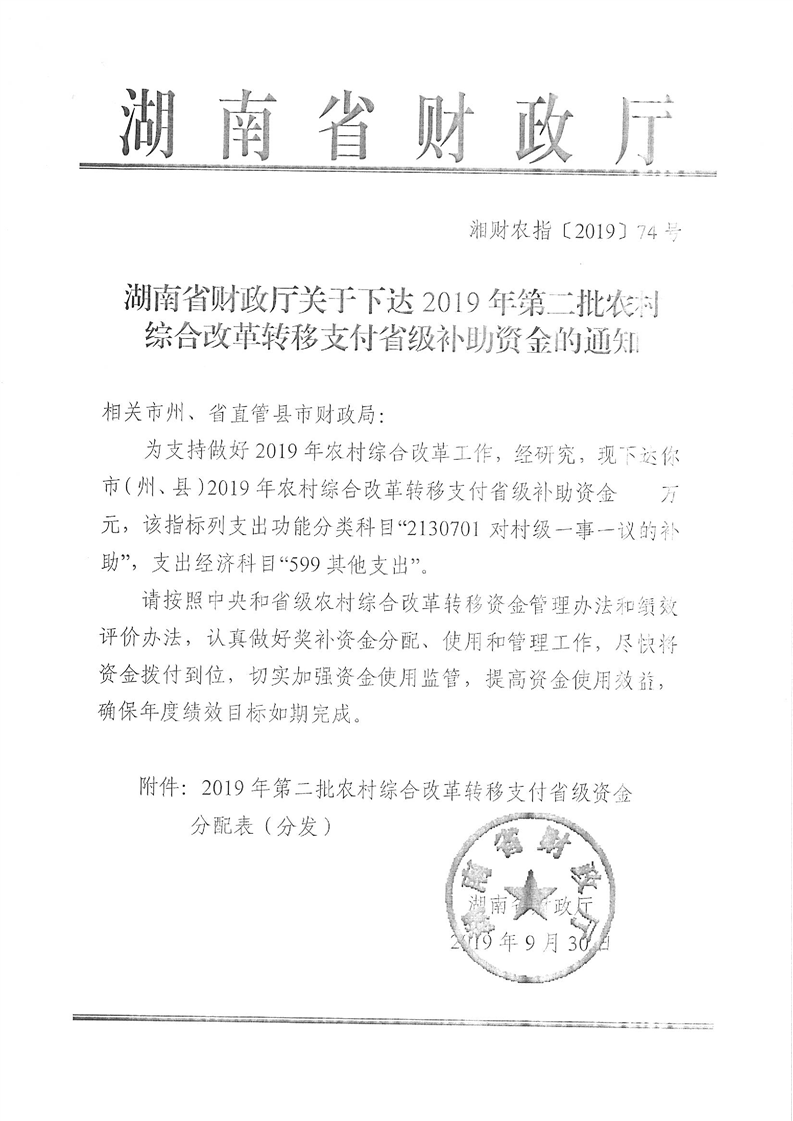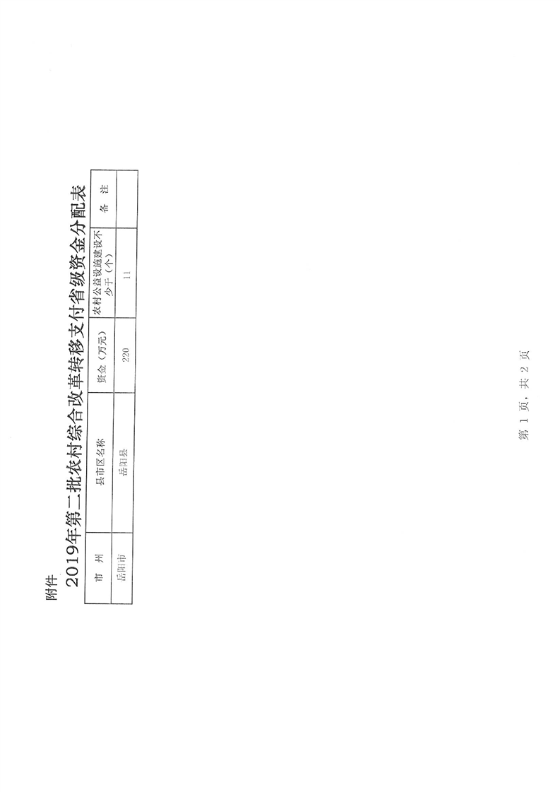 2019年第二批农村综合改革转移支付省级补助资金公开