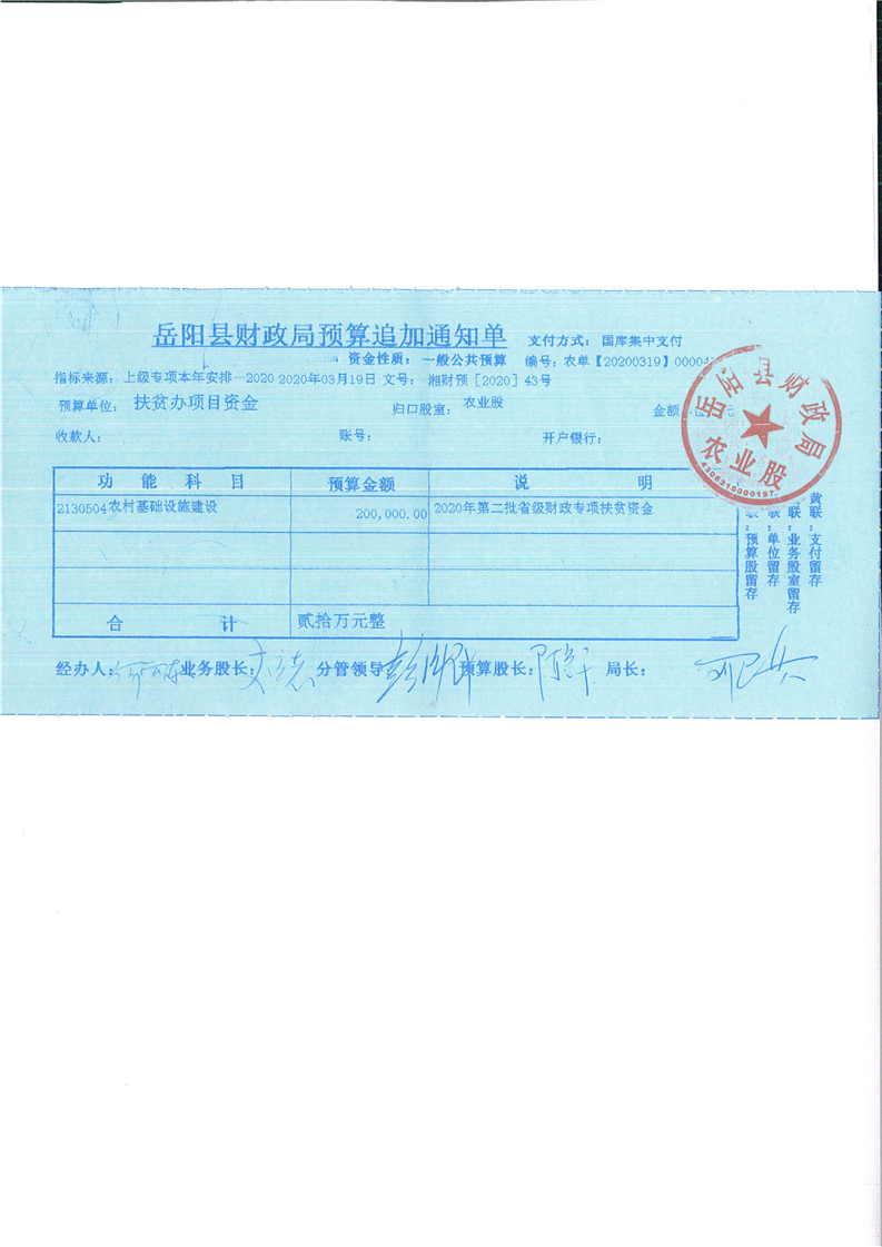 岳阳县下达2020年第二批省级财政专项扶贫资金公开(五)