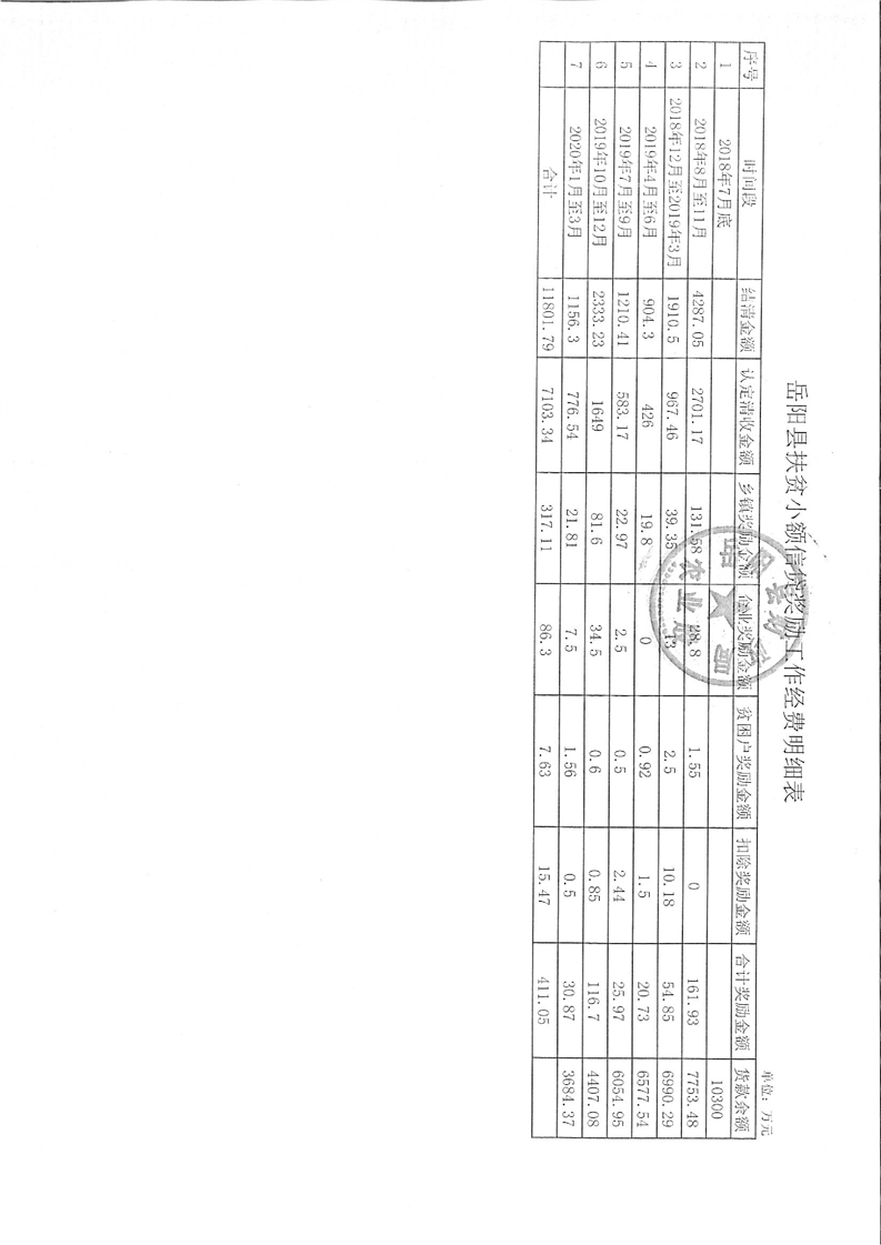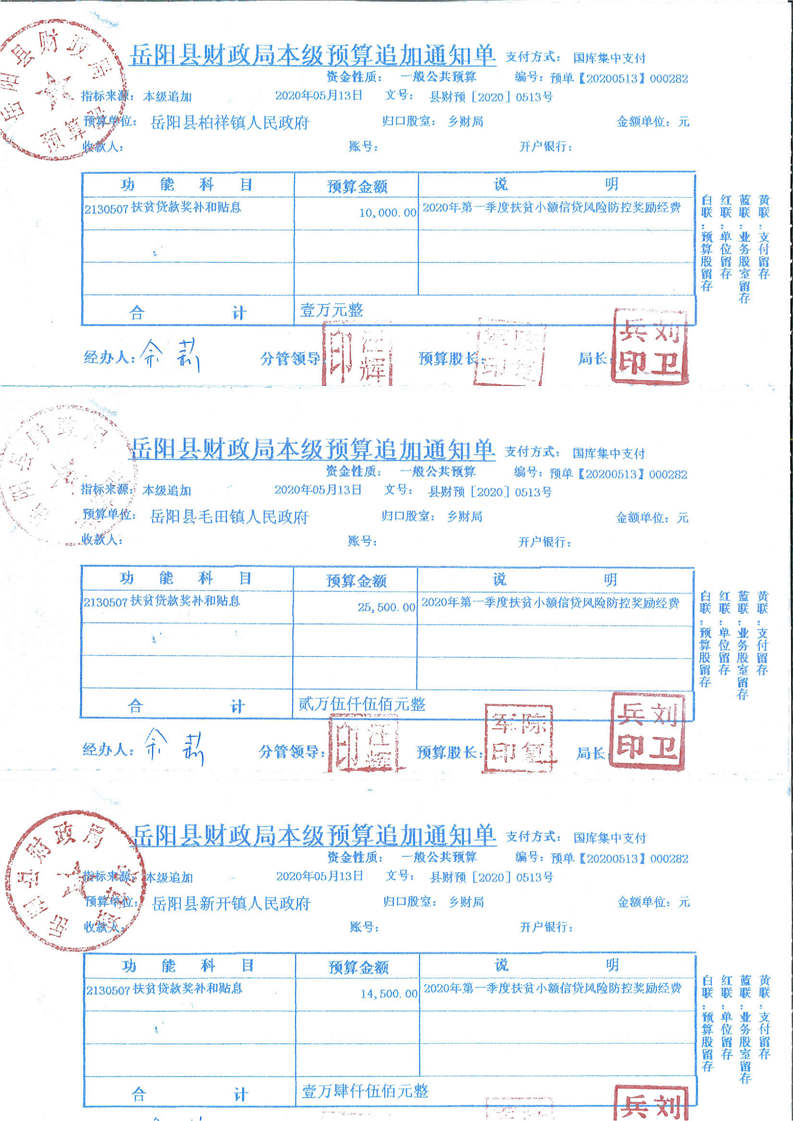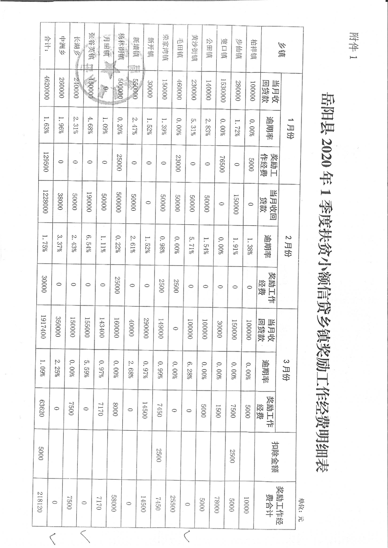 岳阳县2020年第一季度扶贫小额信贷风险防控奖励经费公开公示