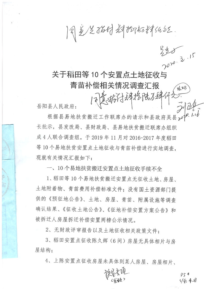岳阳县2020年易地扶贫搬迁征地拆迁经费公开公示