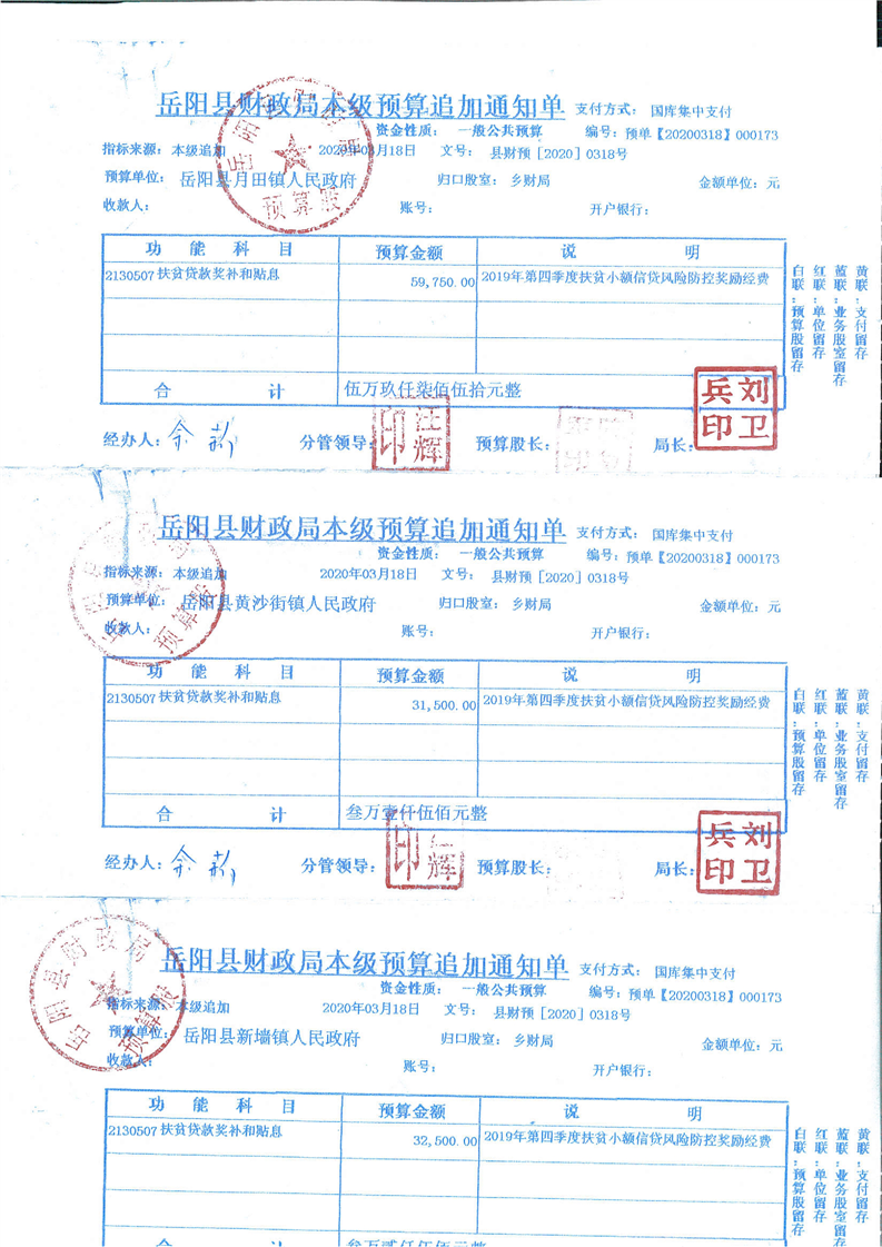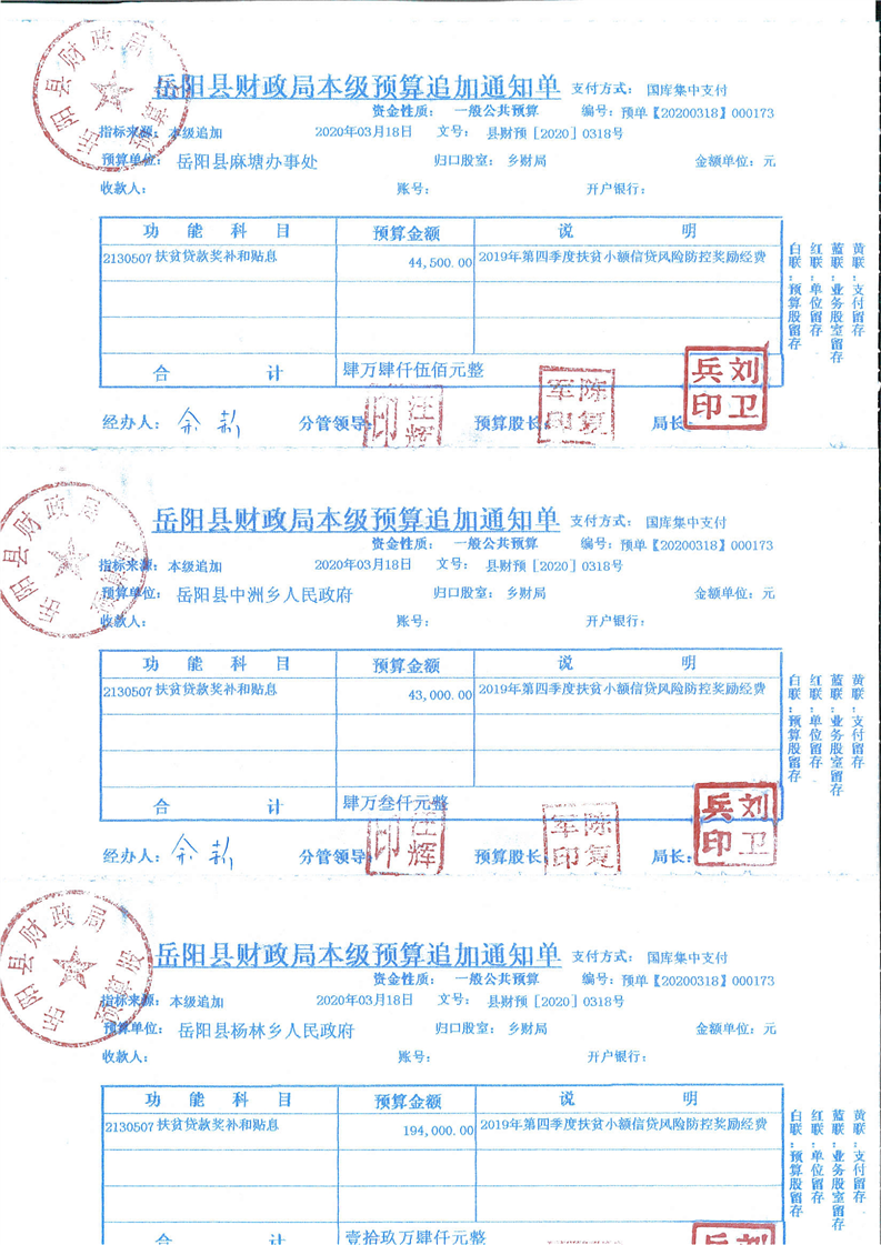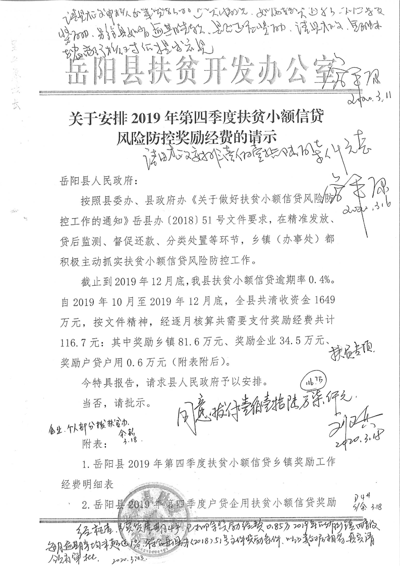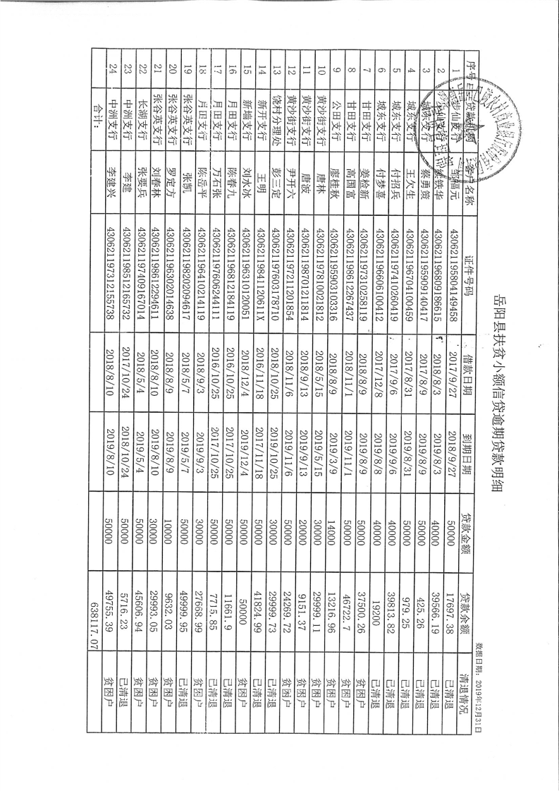 岳阳县2019年第四季度扶贫小额信贷风险防控专项公开公示