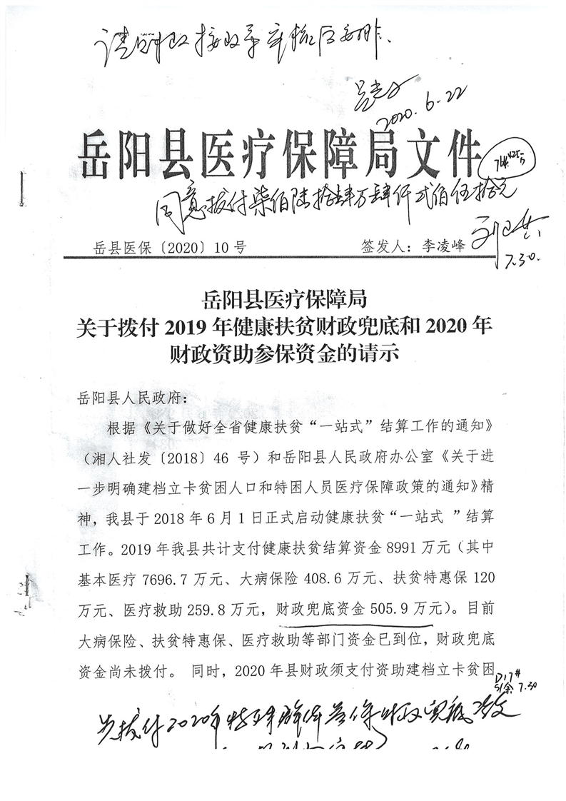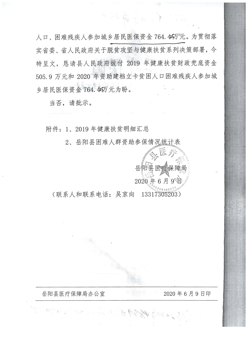 岳阳县下达2019年健康扶贫财政兜底和2020年财政资助参保资金公开公示