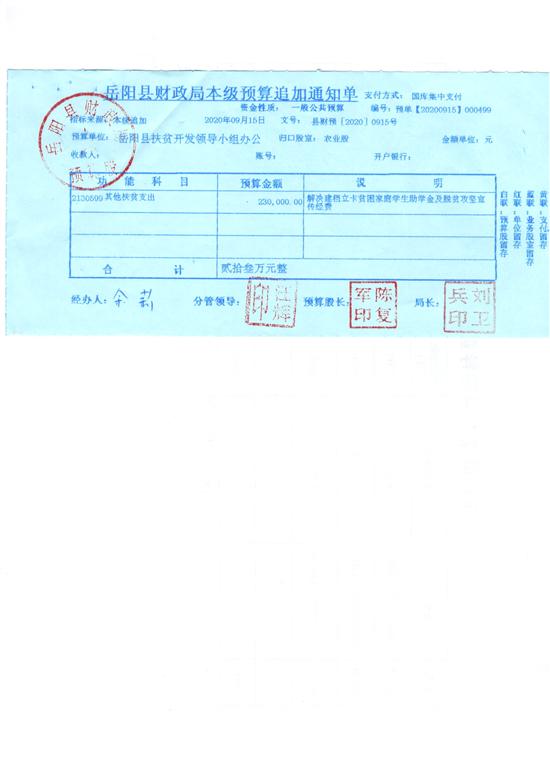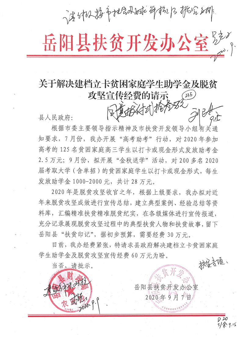 岳阳县下达2020年建档立卡贫困家庭学生助学金