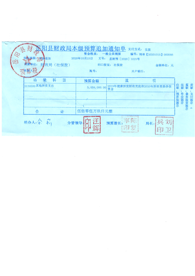 岳阳县下达2019年健康扶贫财政兜底和2020年财政资助参保资金