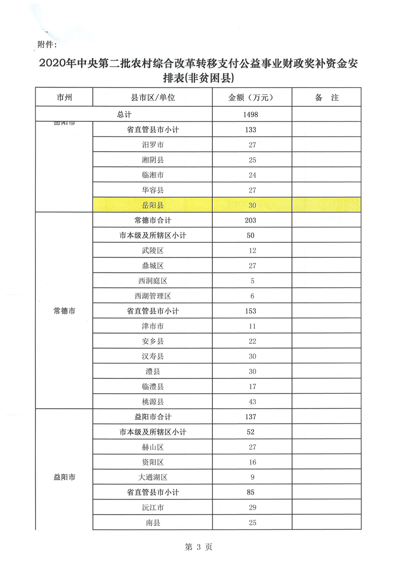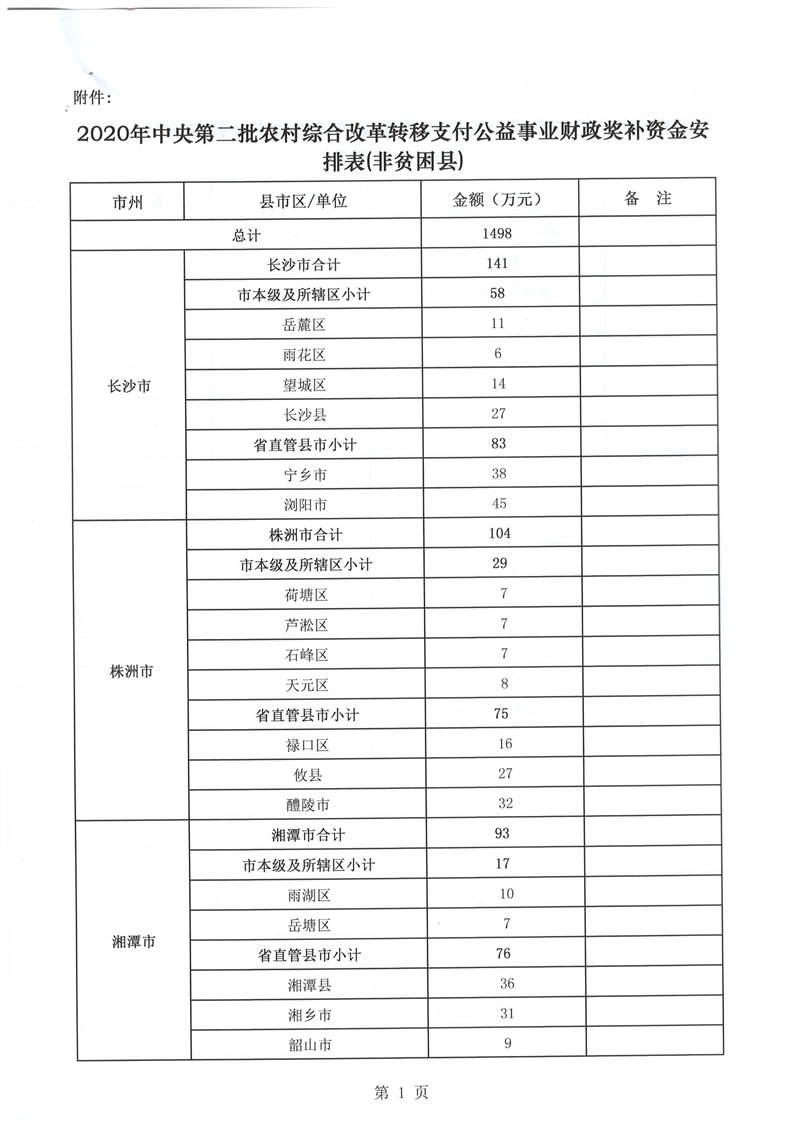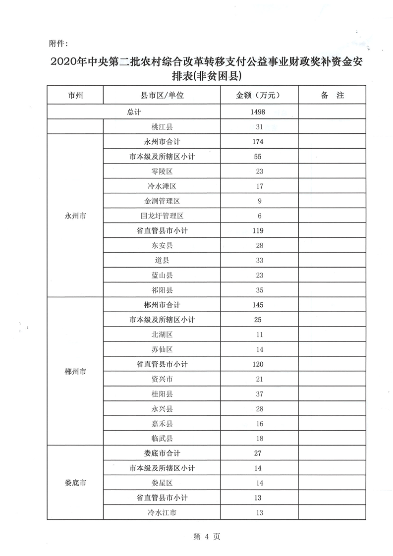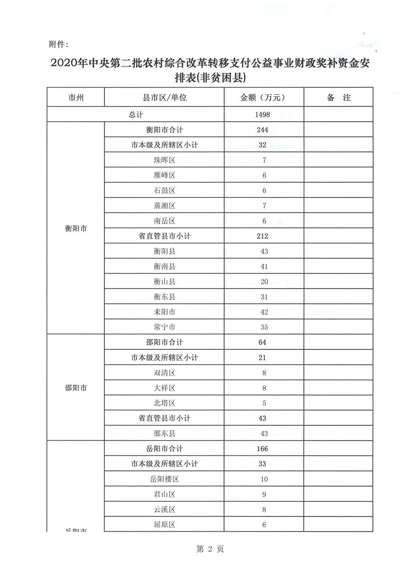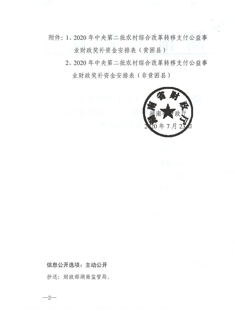 省财政厅下达2020年中央第二批农村综合改革转移支付公益事业财政奖补资金公开