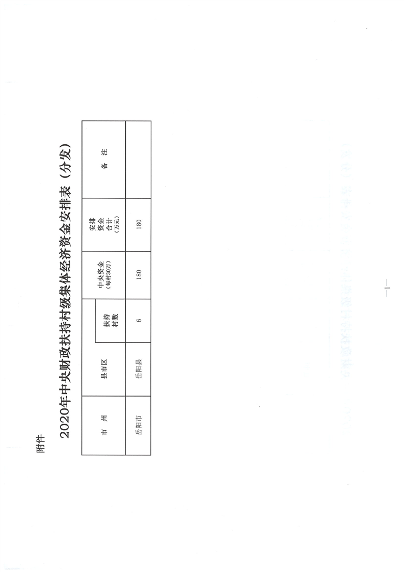岳阳县财政局下达2020年扶持村级集体经济中央资金公开