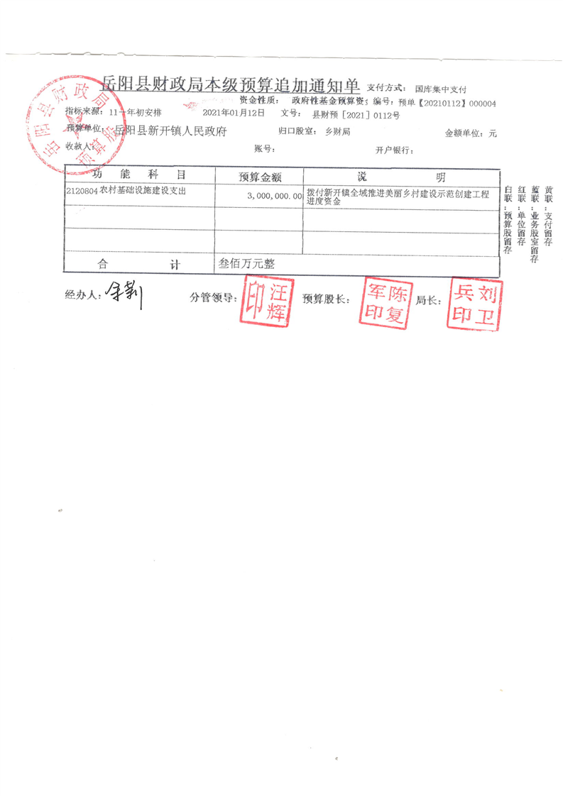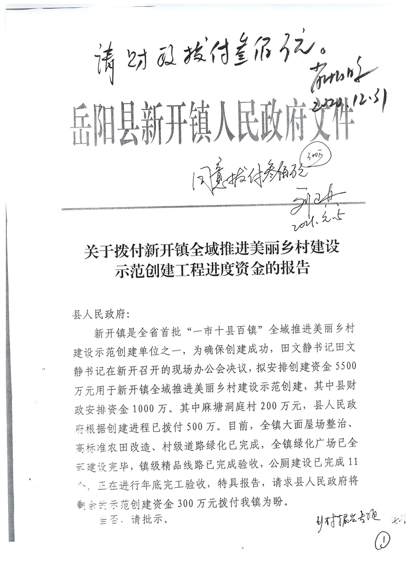 岳阳县下达新开镇全域推进美丽乡村建设示范创建工程进度资金公开公示