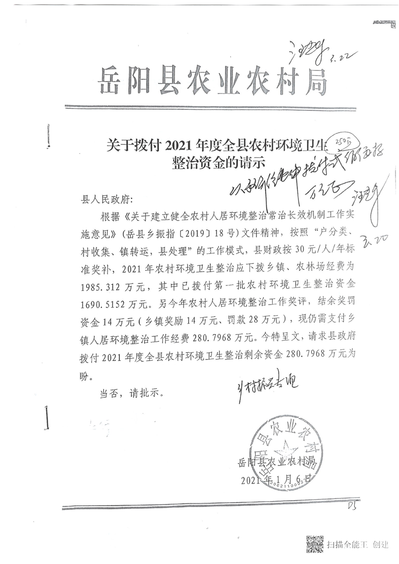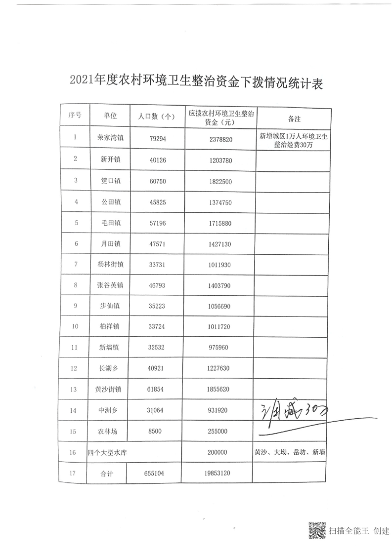 岳阳县本级财政乡村振兴专项(2021年度全县农村环境卫生整治资金)公开公示