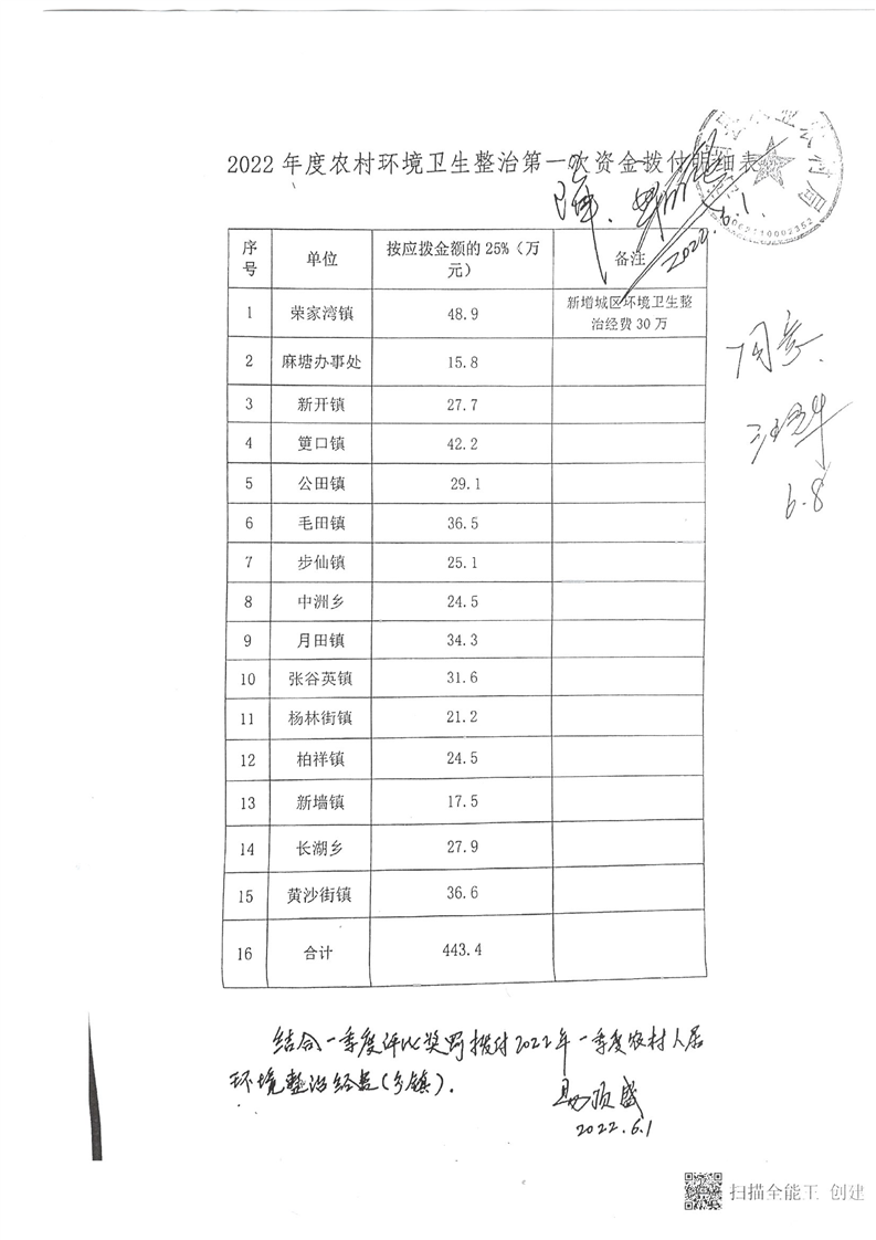 岳阳县本级财政乡村振兴专项(2022年度农村环境卫生整治第一次资金)公开公示
