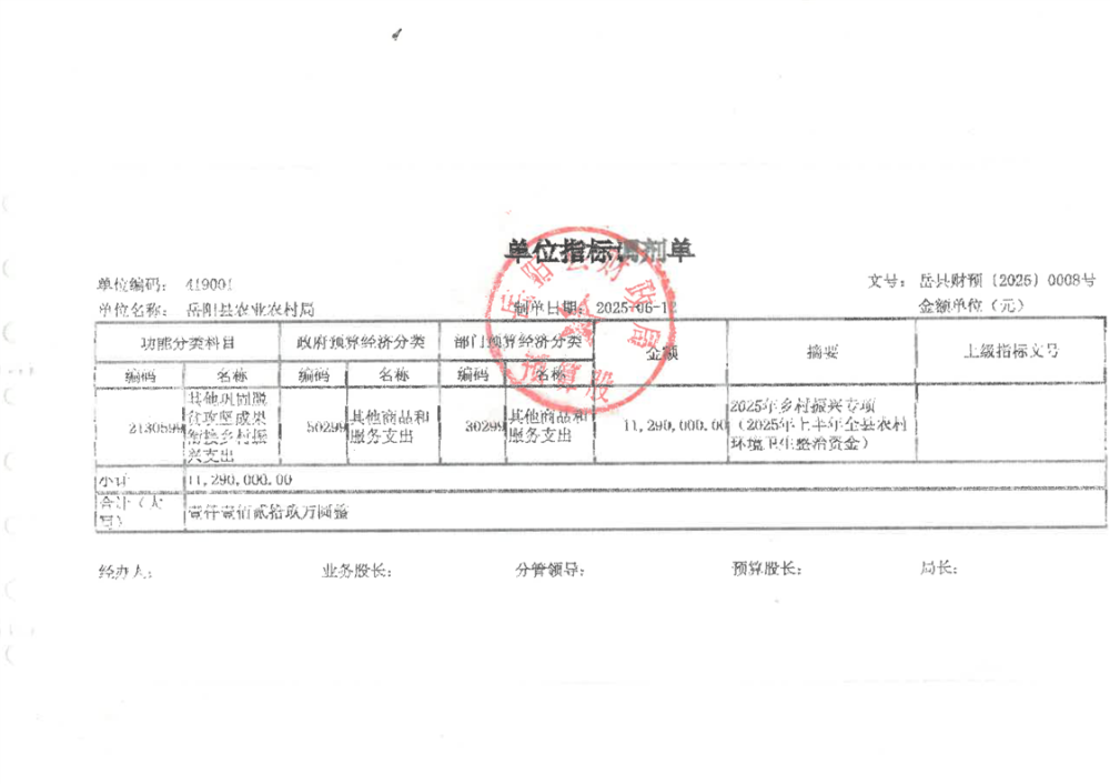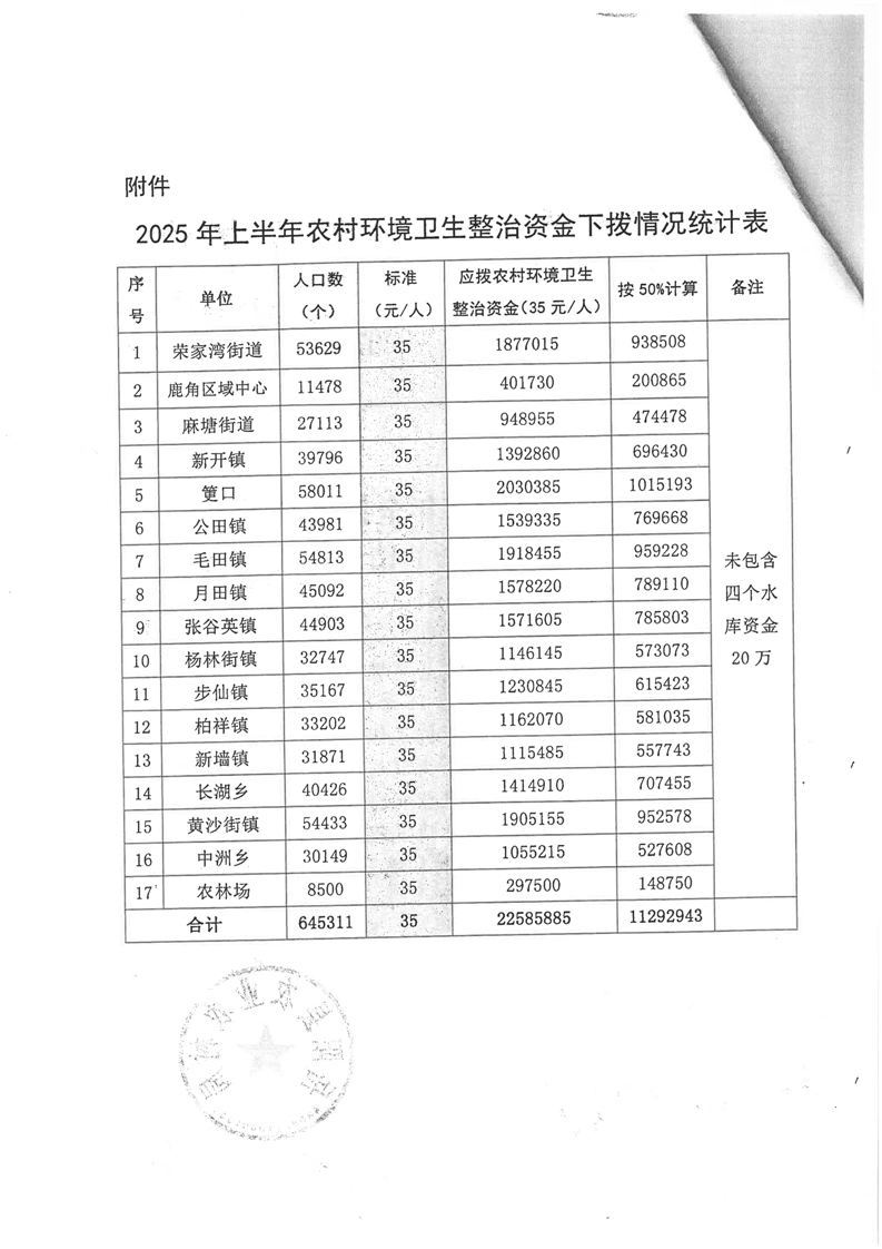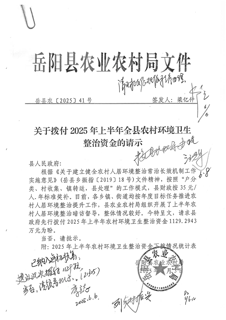 关于拨付2025年上半年全县农村环境卫生整治资金的请示