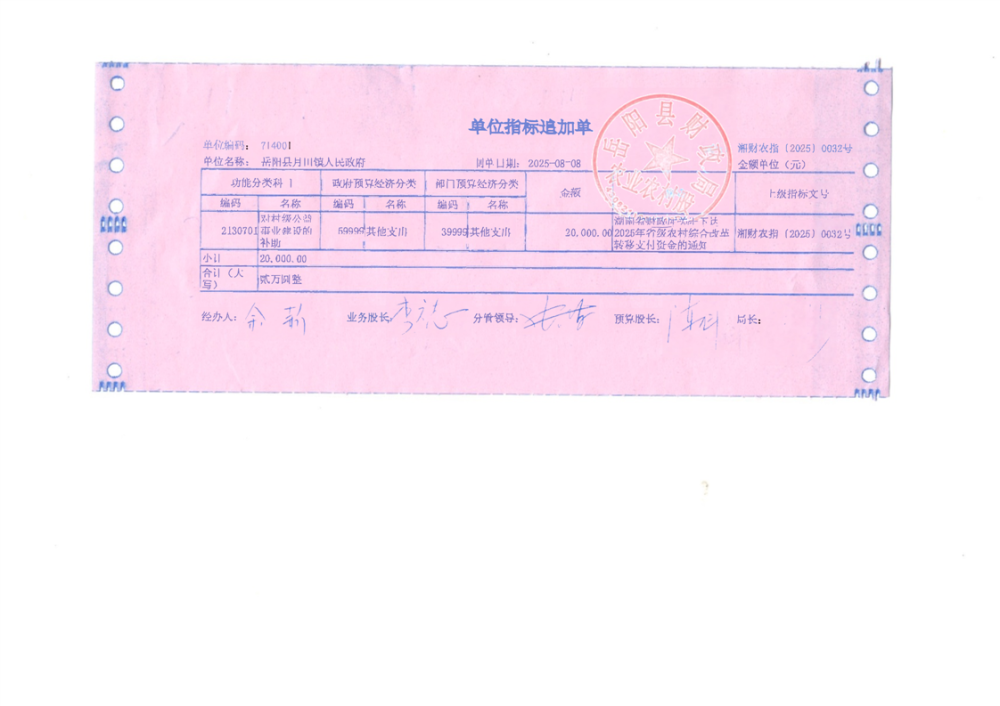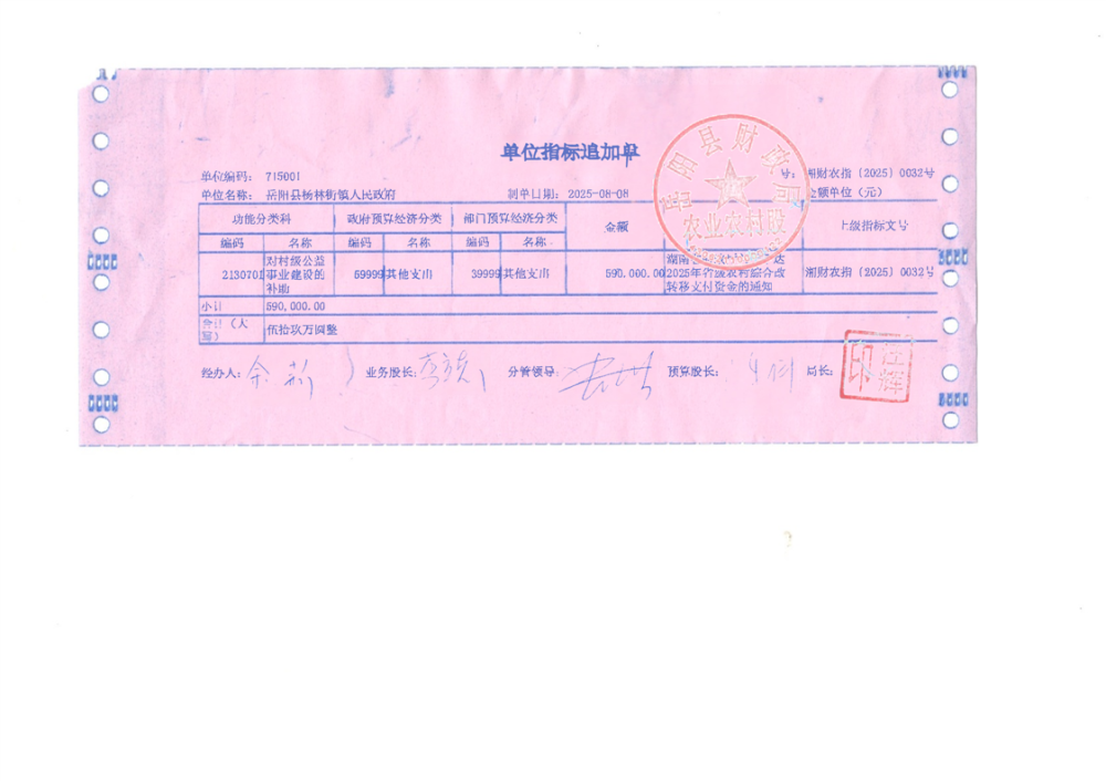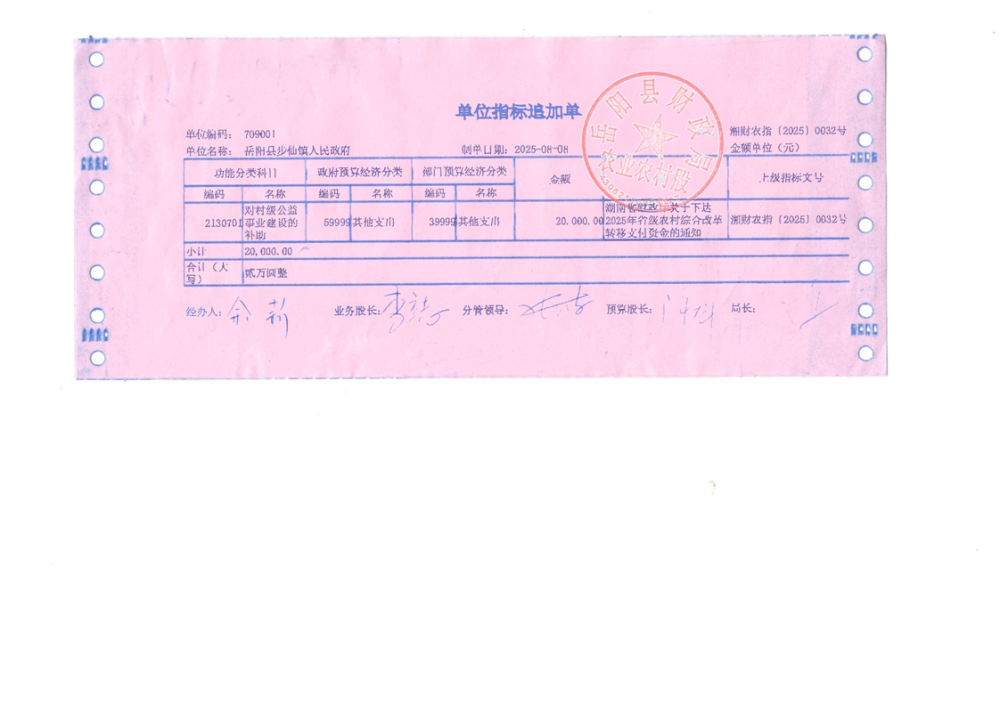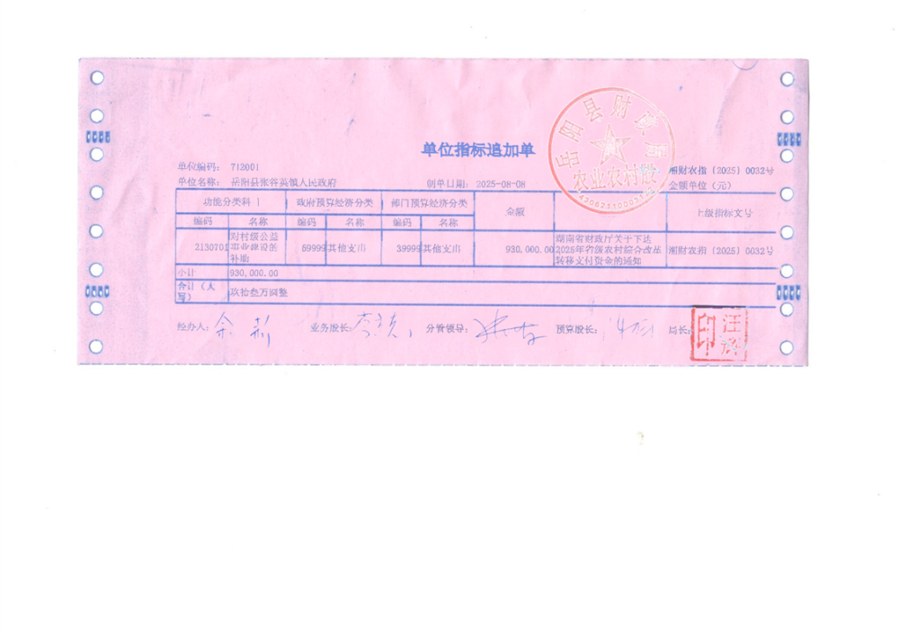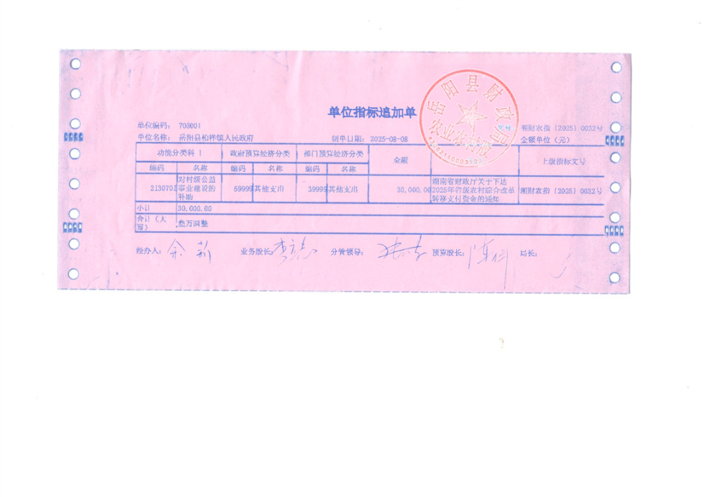2025年省级农村综合改革转移支付资金拨单(湘财农指〔2025〕32号)