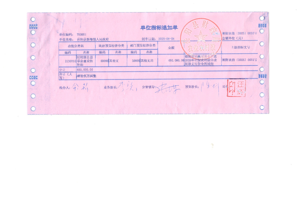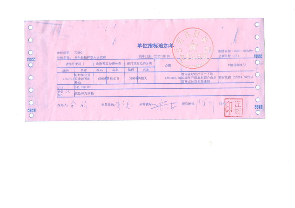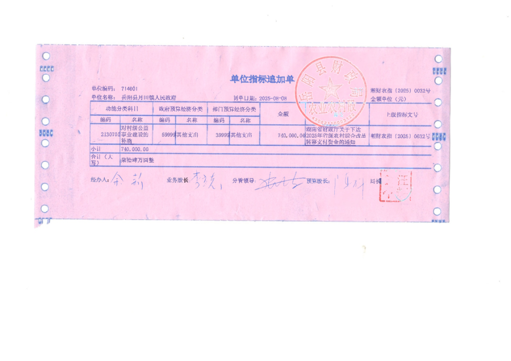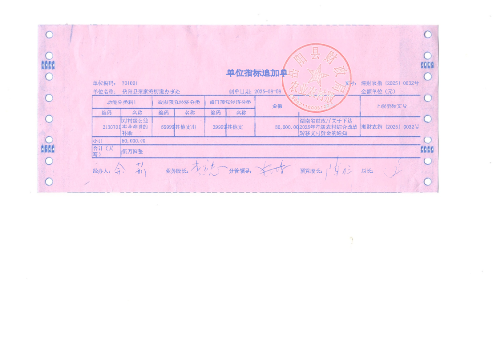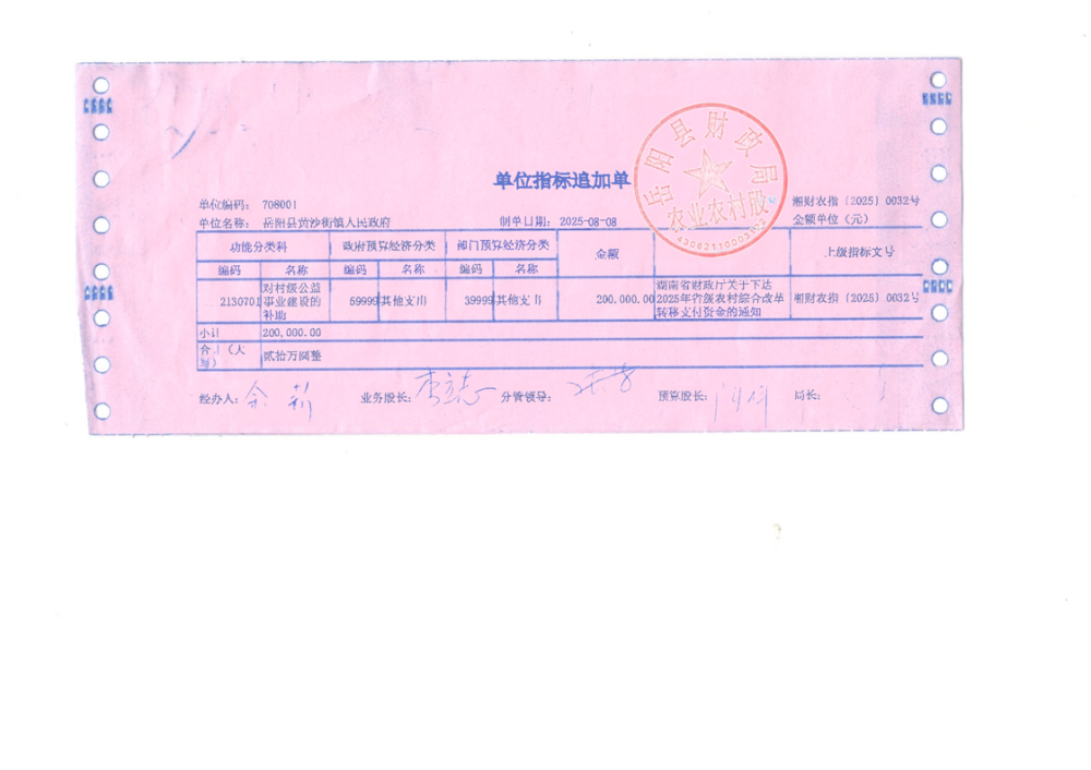 2025年省级农村综合改革转移支付资金拨单(湘财农指〔2025〕32号)
