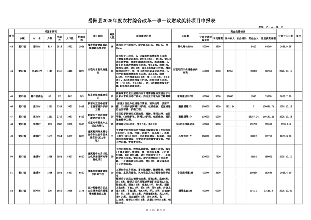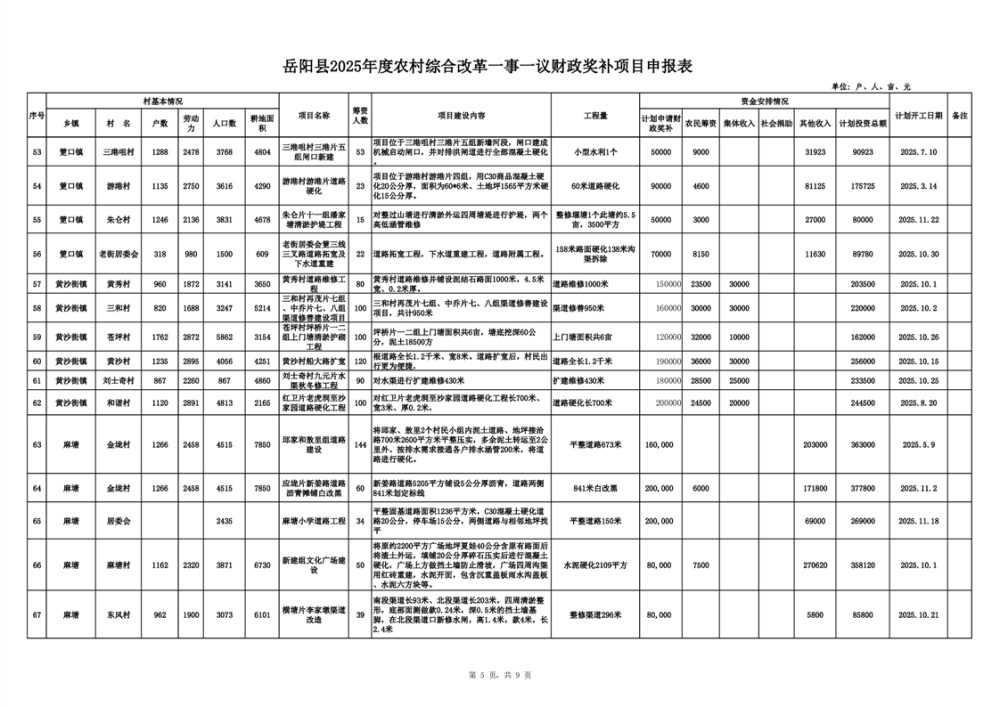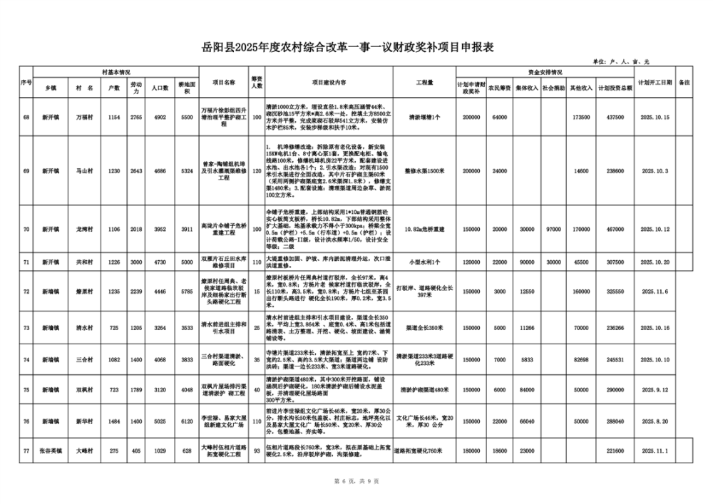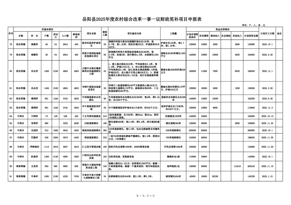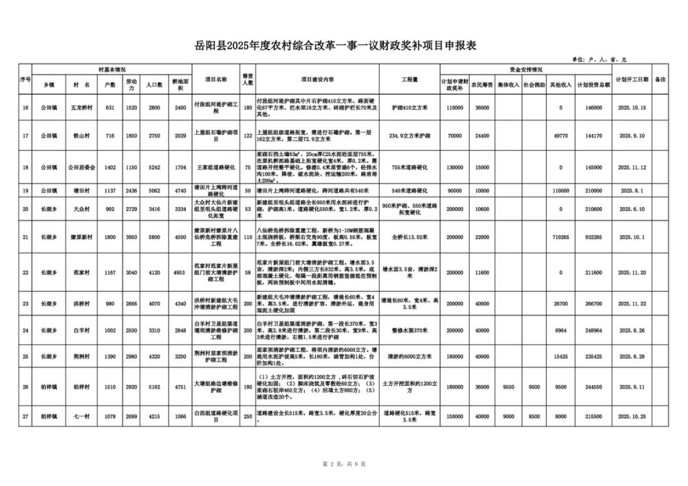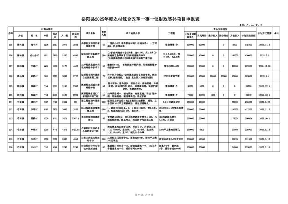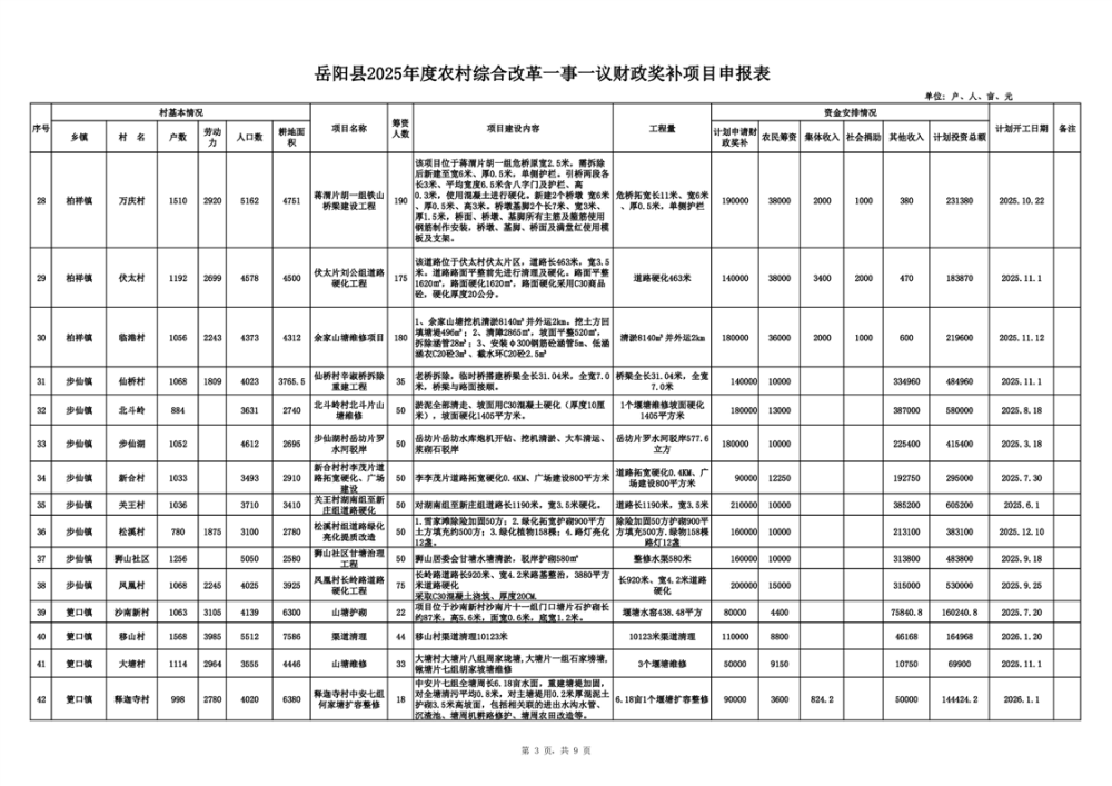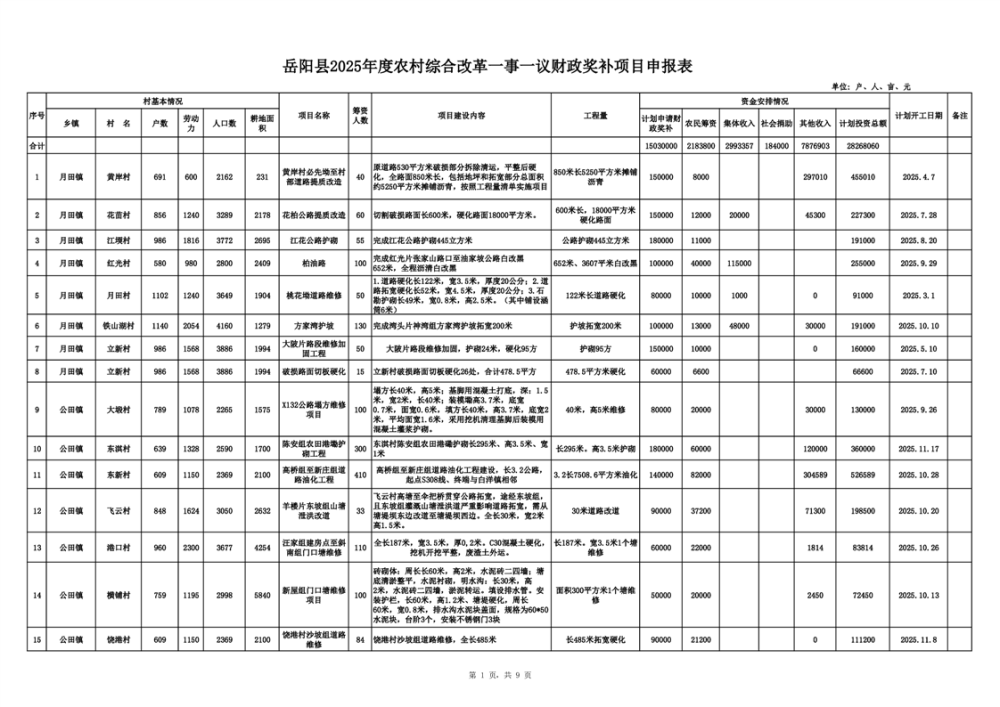 岳阳县2025年农村综全改革一事一议财政奖补项目申报表