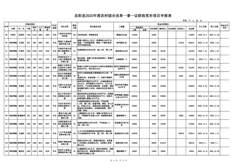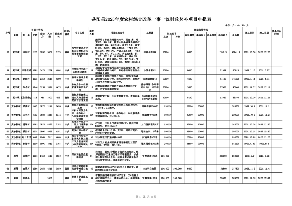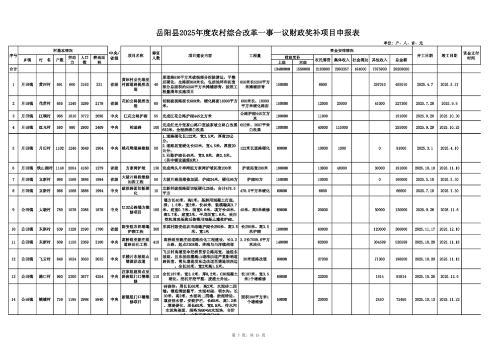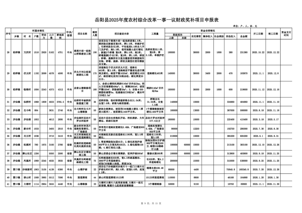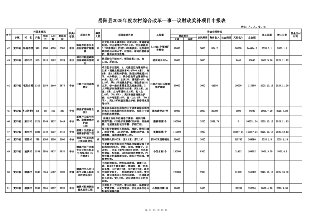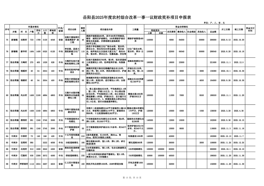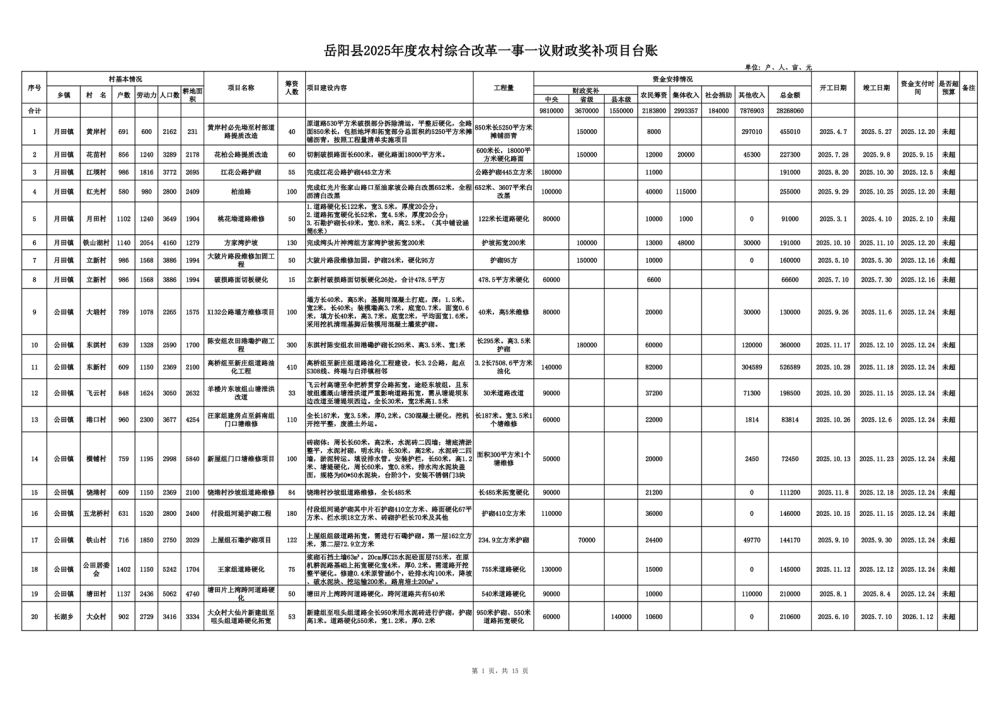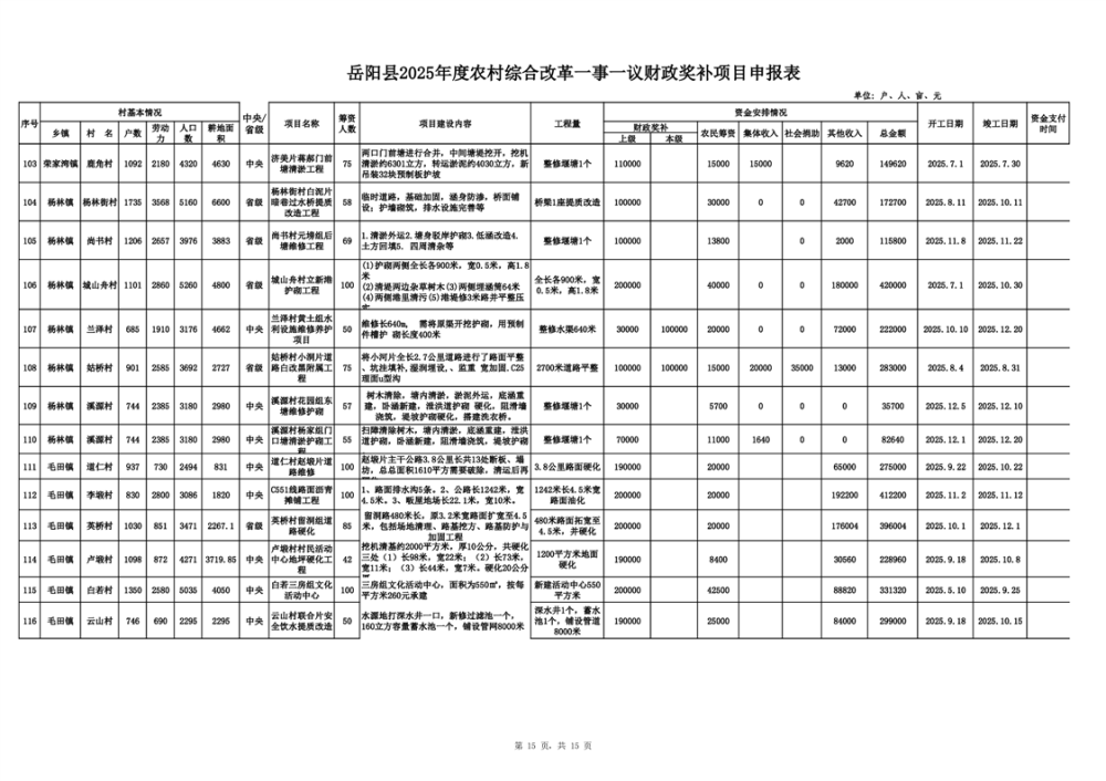 岳阳县2025年农村综全改革一事一议财政奖补项目台账
