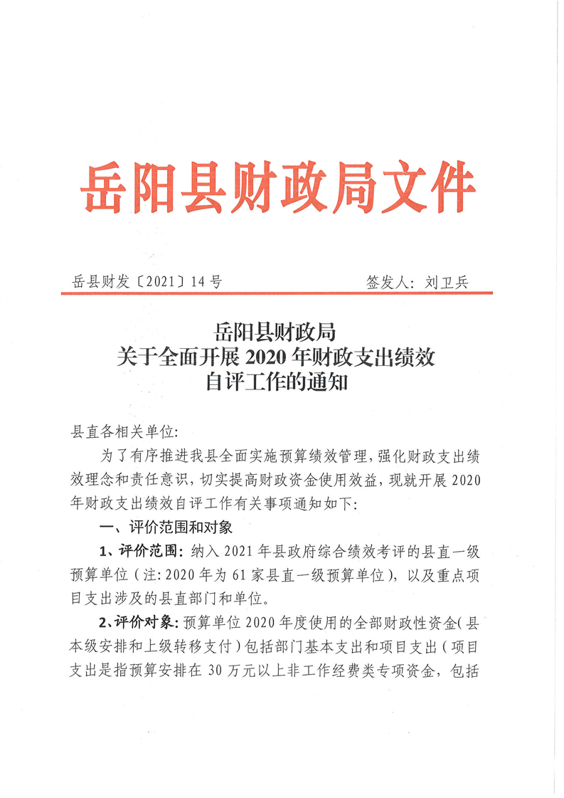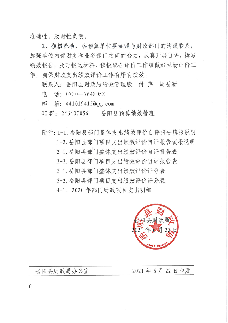 岳阳县财政局2020年绩效自评的通知附件 .docx