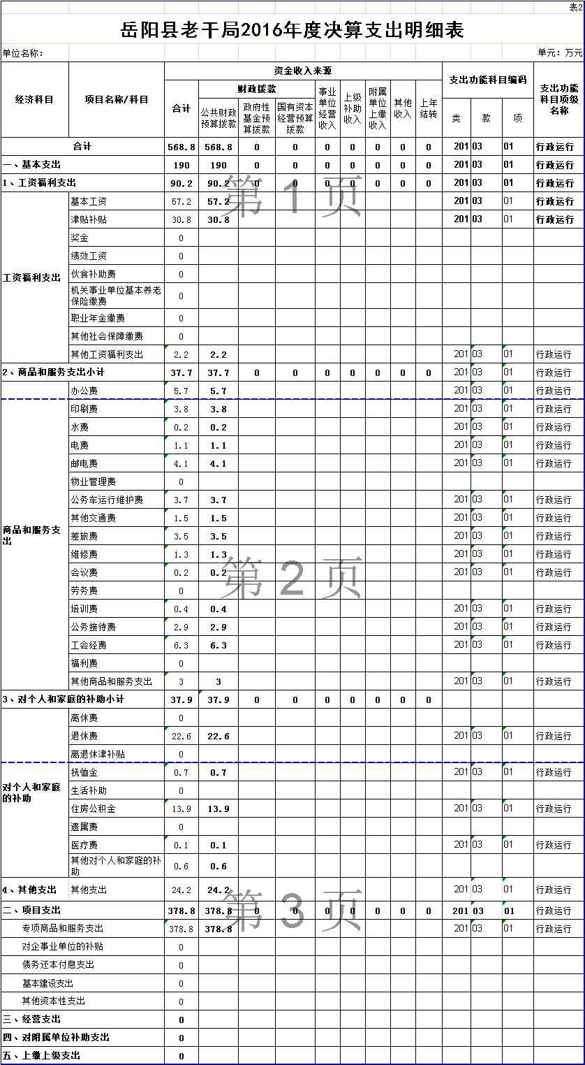 岳阳县老干局2016年度决算支出明细表