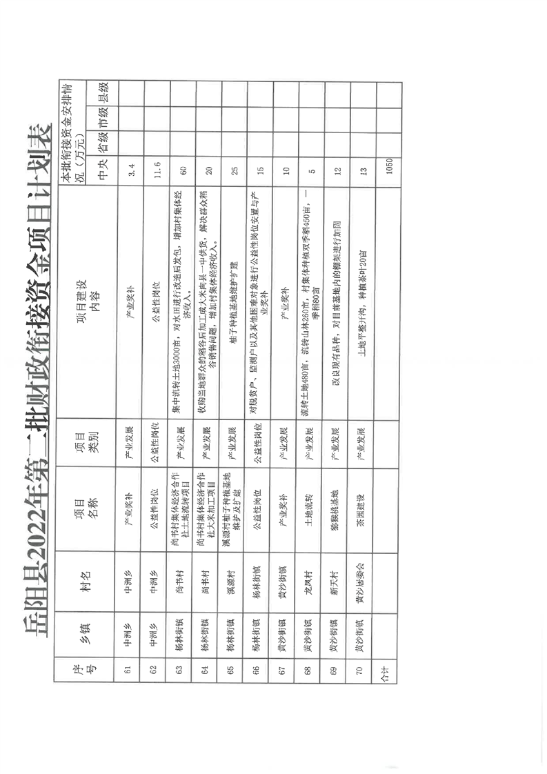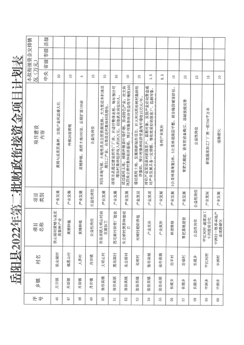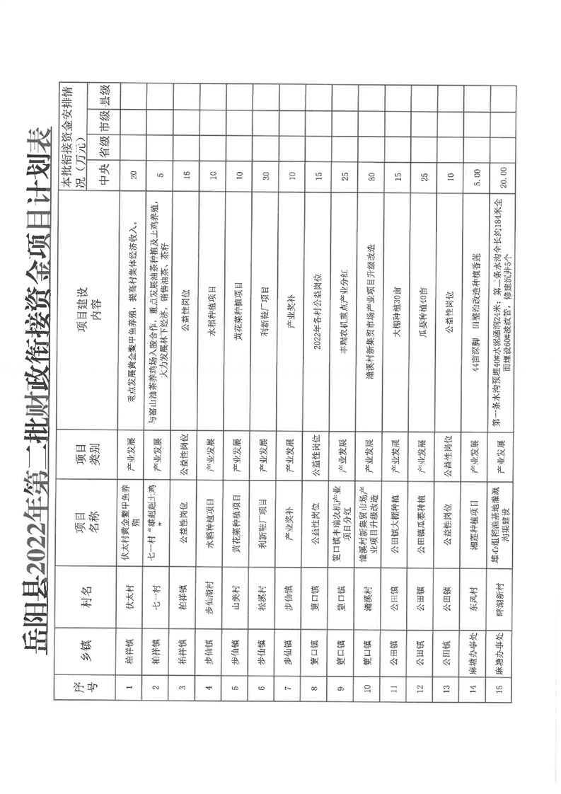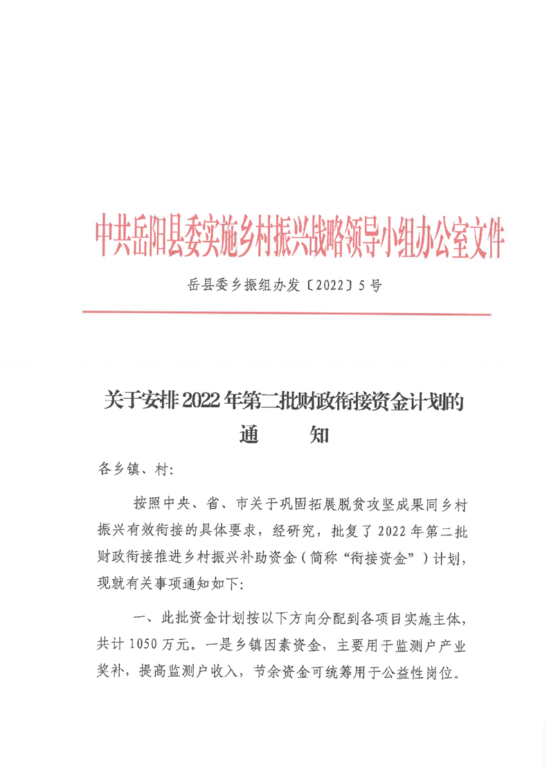 岳阳县财政局2022年关于下达第二批财政衔接推进乡村振兴资金及绩效目标批复公开公示
