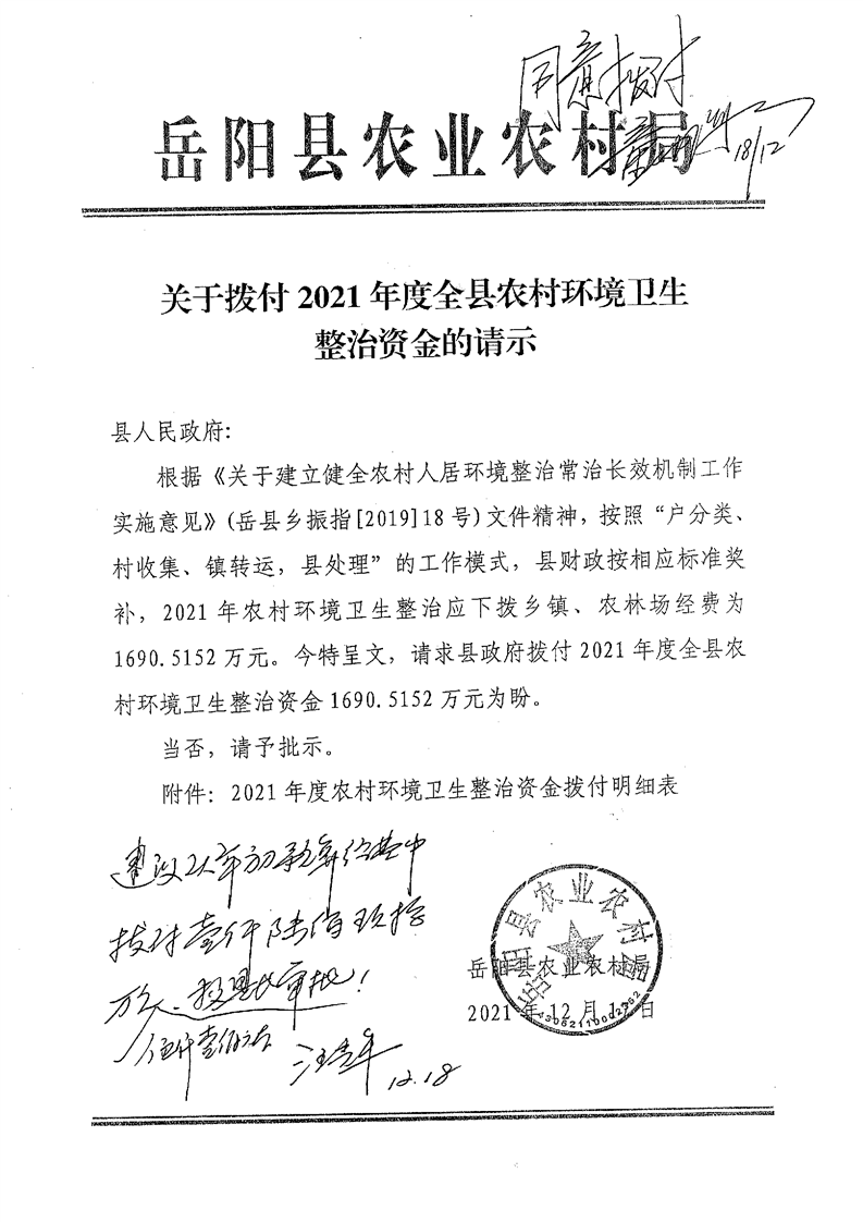 2021年度县级财政衔接推进乡村振兴全县农村环境卫生整治资金公开公示