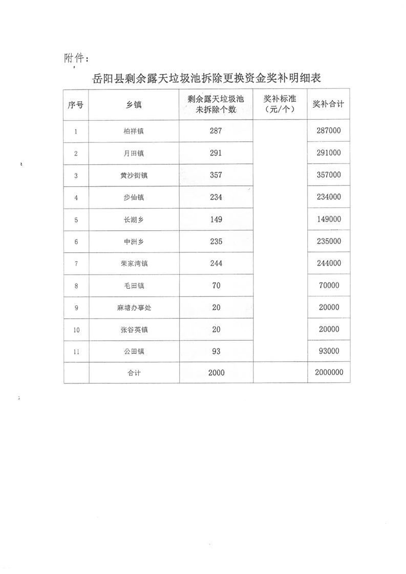 岳阳县本级财政乡村振兴专项(全县露天垃圾池拆除更换奖补资金)公开公示