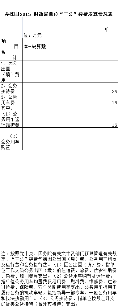 岳阳县2015年财政局单位“三公”经费决算情况表