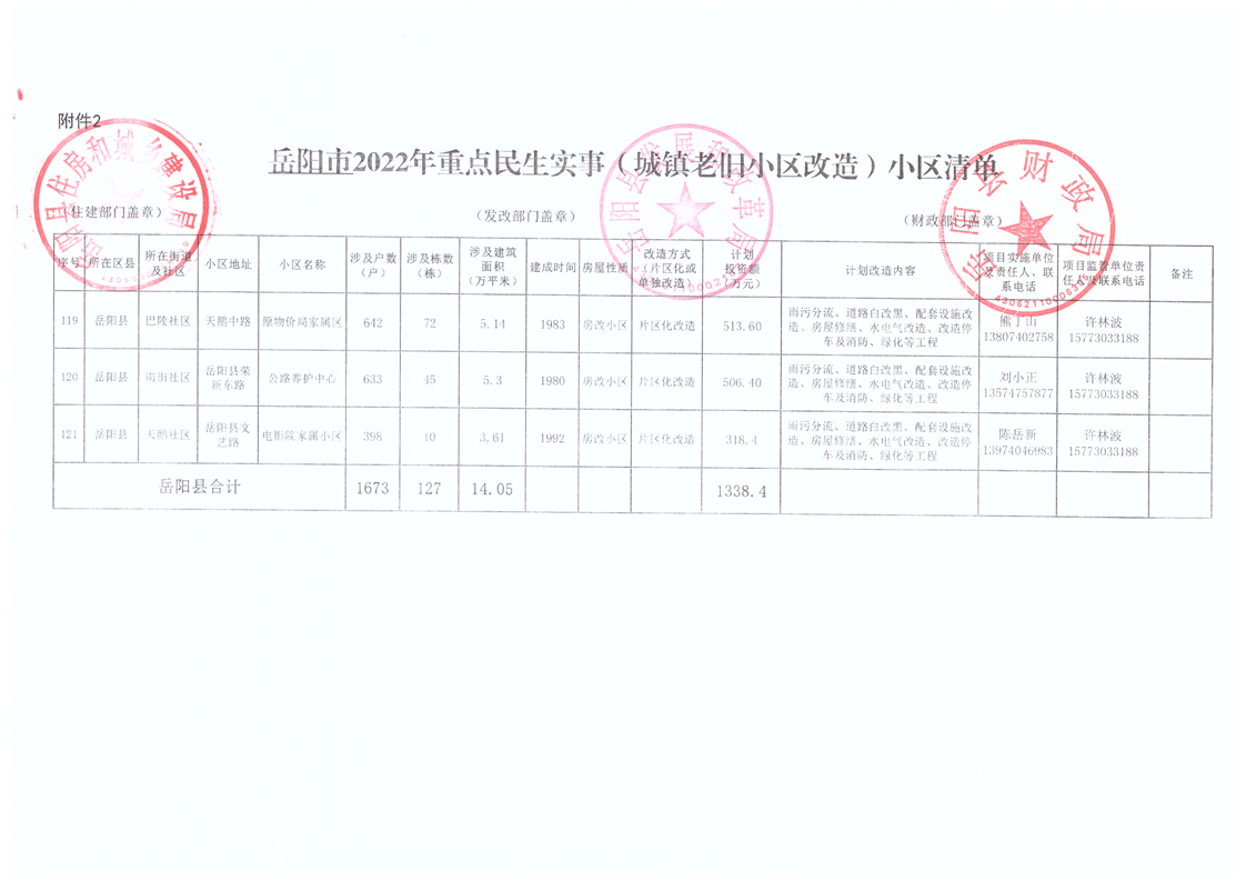 岳阳县2022年重点民生实事(城镇老旧小区改造)项目清单
