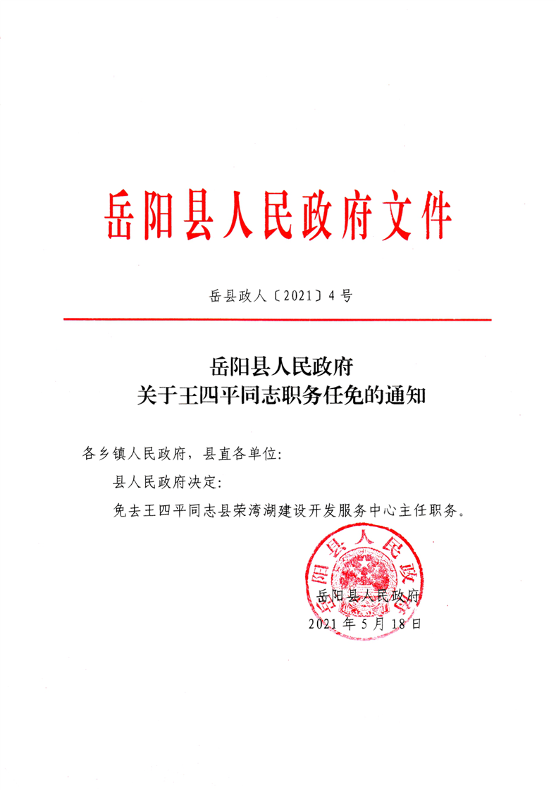 关于王四平同志职务任免的通知