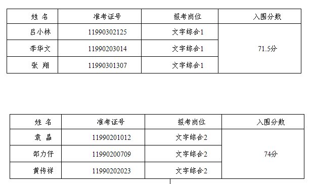 经报名、笔试、资格审查等程序,按报考职位笔试成绩排名和
