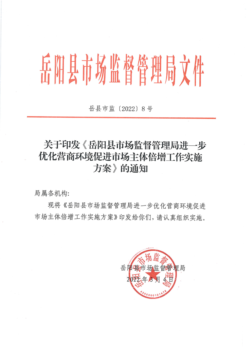 岳阳县市场监督管理局进一步优化营商环境促进市场主体倍增工作实施方案