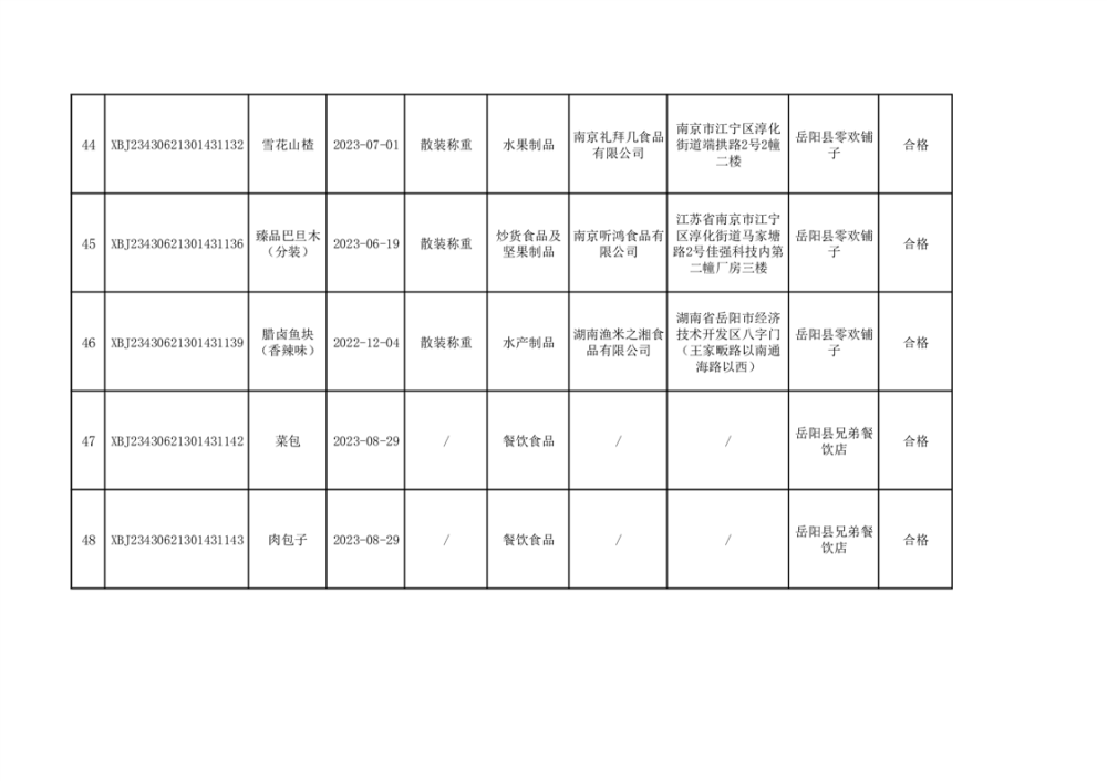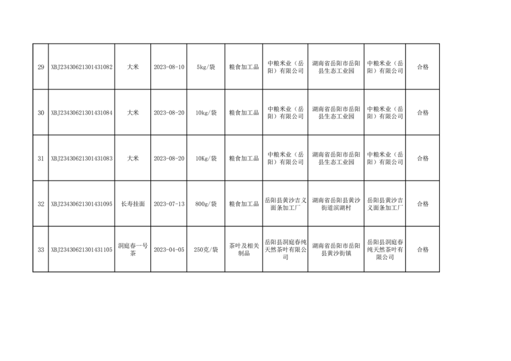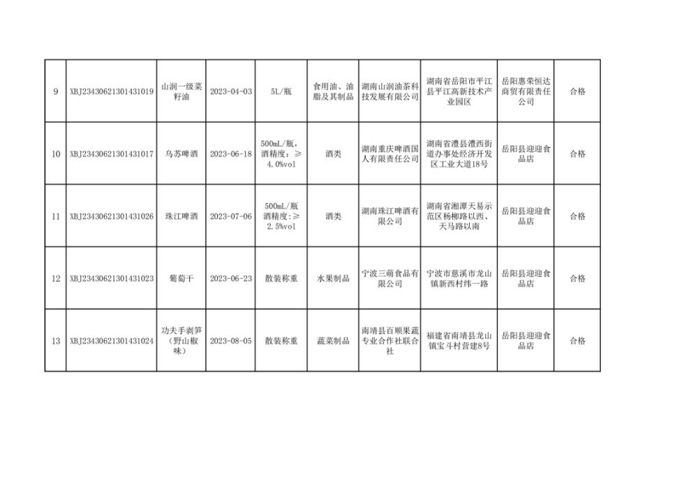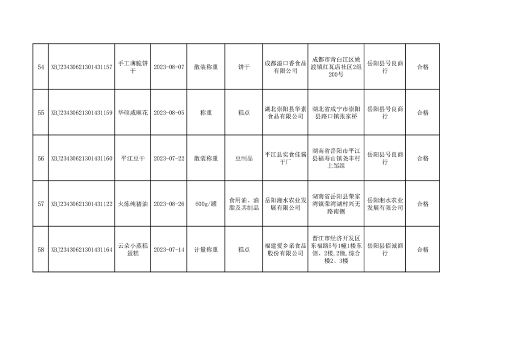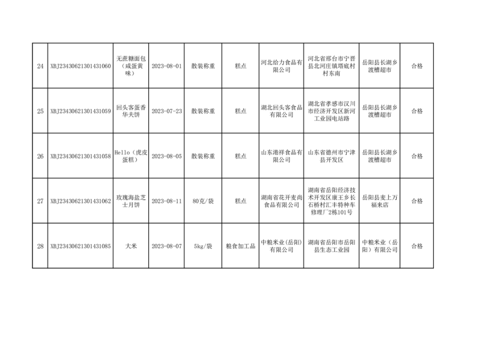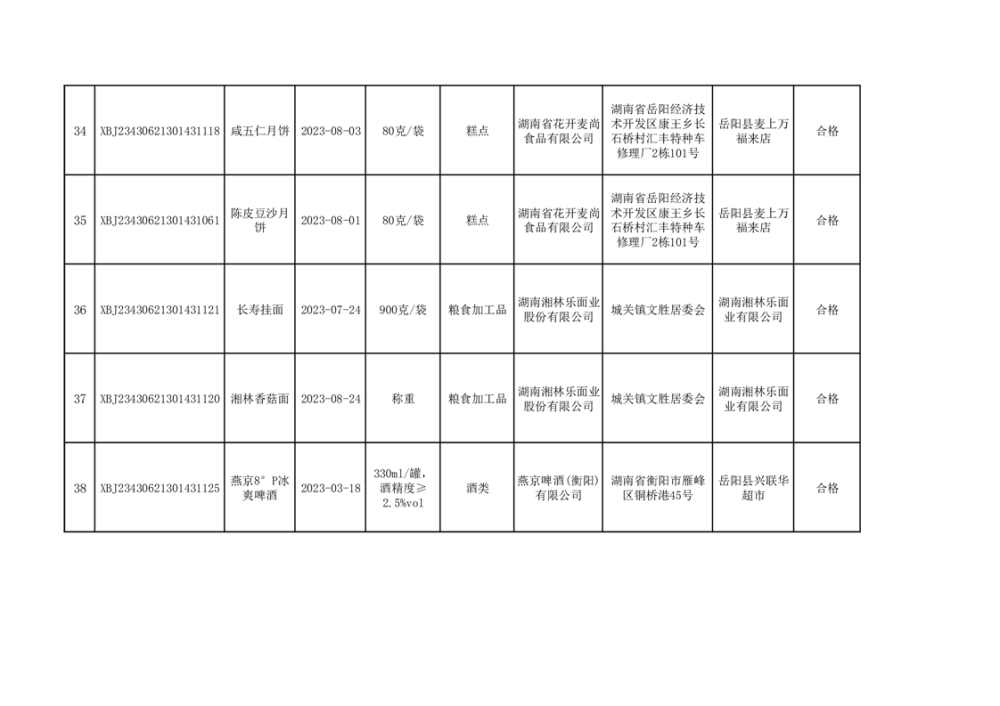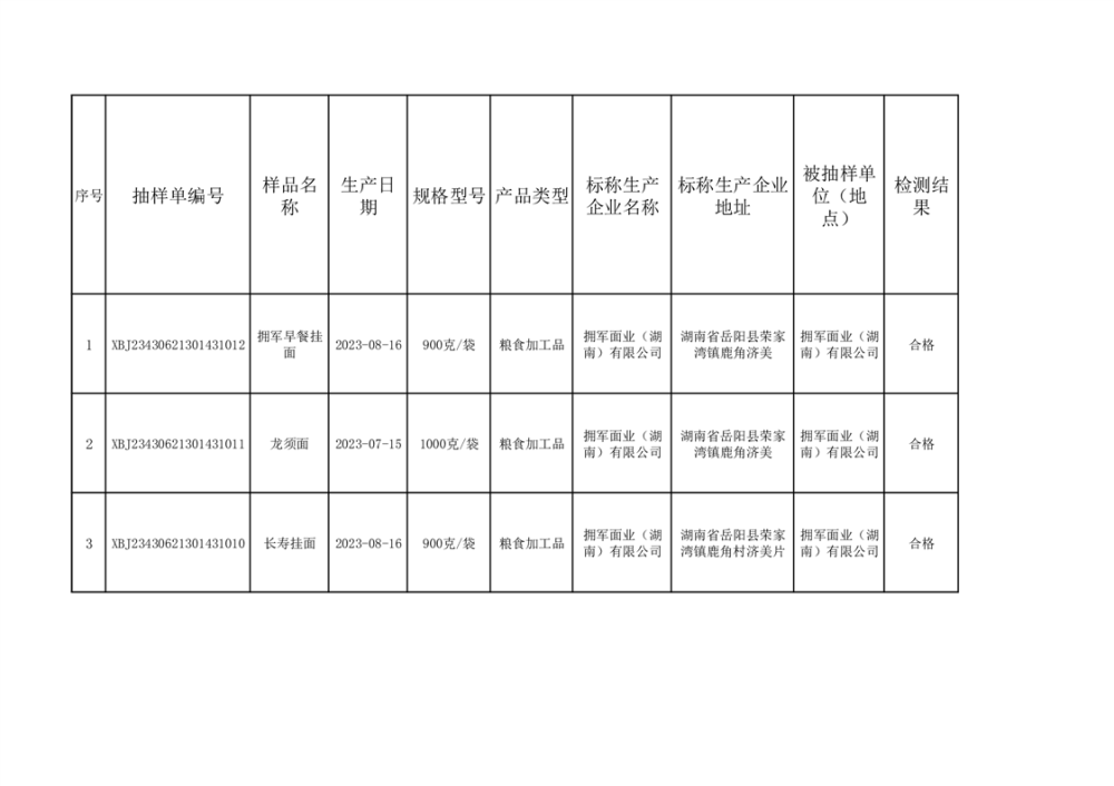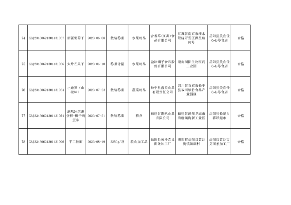 2023年普通食品监督抽检情况公示(100批次)