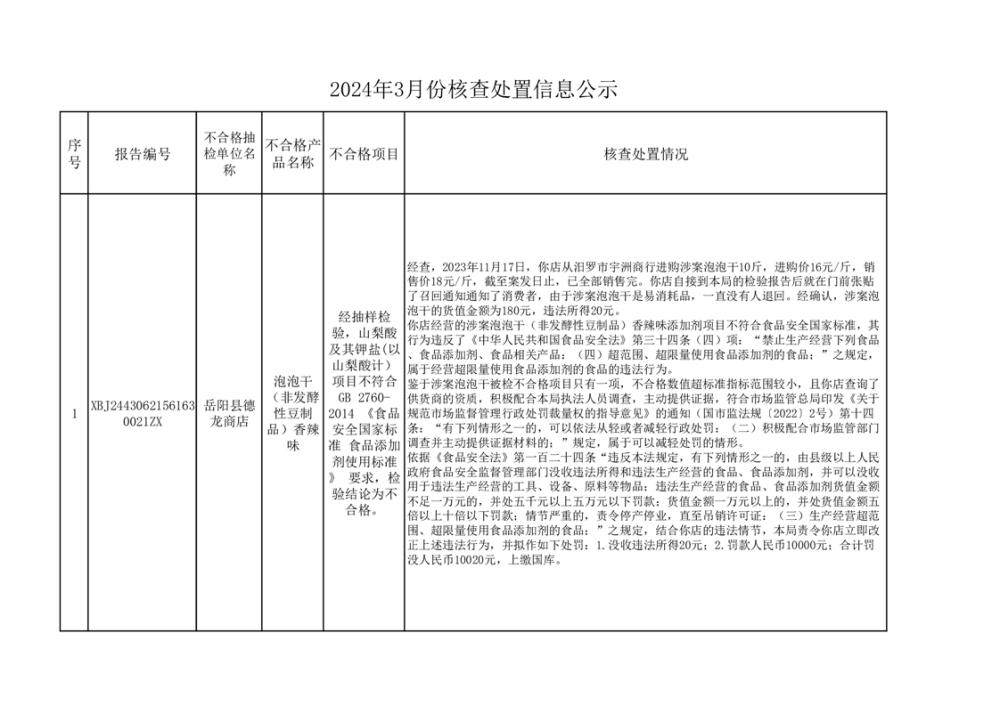 2024年3月份核查处置信息公示