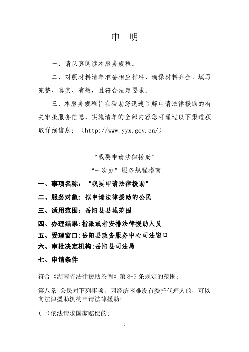 “我要申请法律援助”“一次办”服务规程