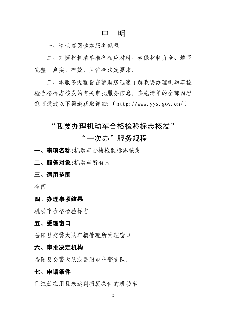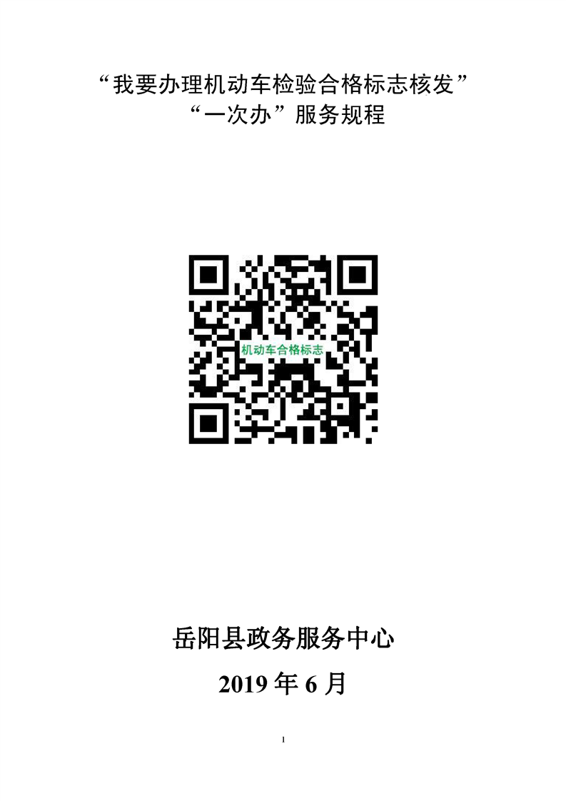 “我要办理机动车检验合格标志核发”“一次办”服务规程