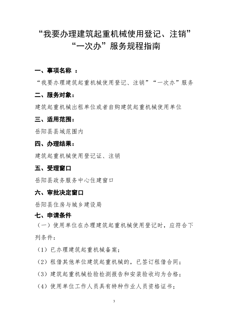 “我要办理建筑起重机械使用登记、注销”一次办”服务规程(公司)