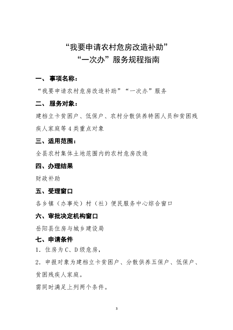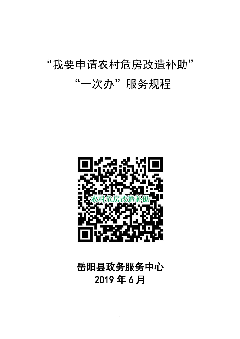 “我要申请农村危房改造补助”“一次办”服务规程