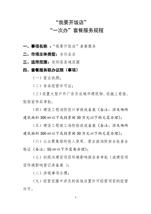 “我要开饭店”套餐服务