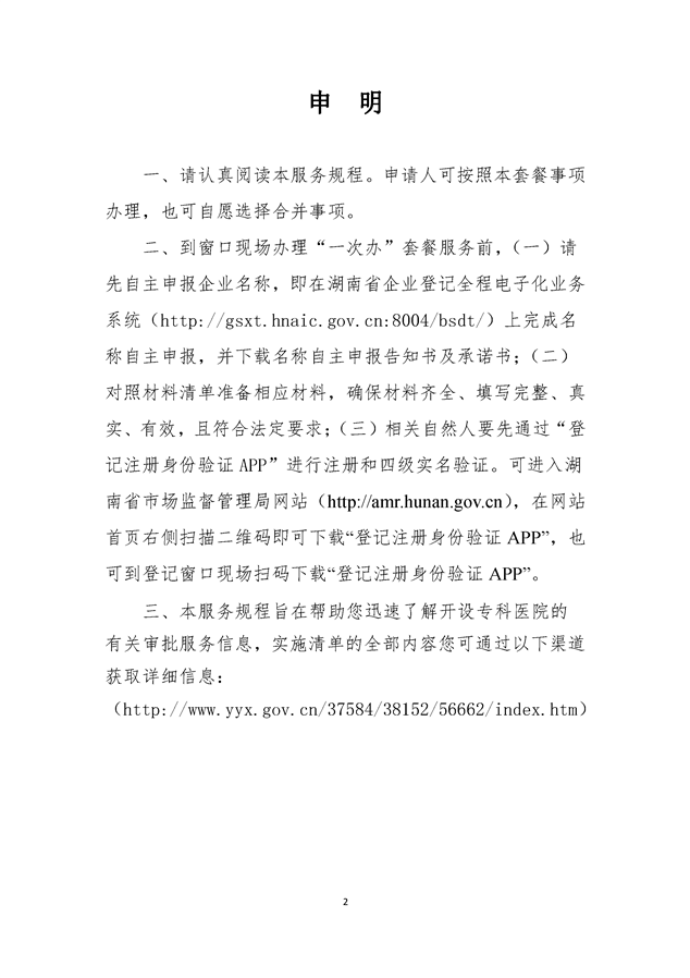“我要开专科医院”套餐服务