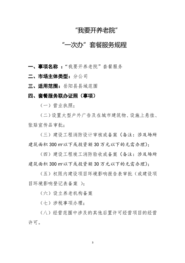 “我要开养老院”套餐服务
