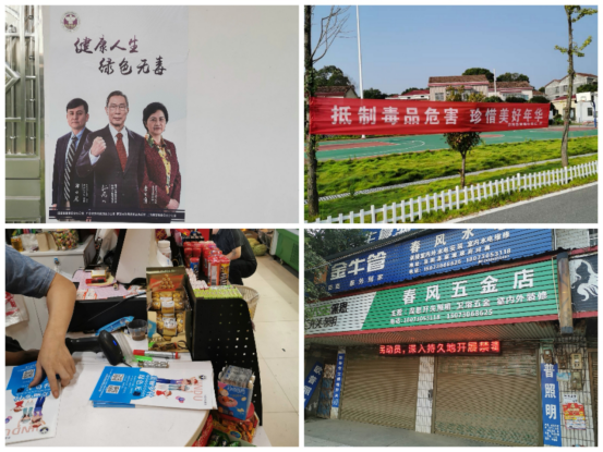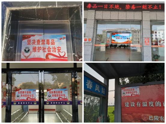 此次宣传活动中,沿街集镇门店、小区、G240沿线公交车站、各村(居)委会、相关部门单位全部发放禁毒宣传册,张贴禁毒海报、悬挂横幅,所有电子屏上传禁毒标语并滚动播放,学校全部开展禁毒防毒专题班会及相关活动。