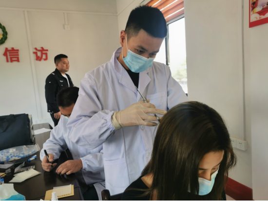 当日上午,各村检测对象均由驻村辅警带到现场,禁毒专干对其身份进行登记核实,专业人员对其进行取发检测,并由派出所干警进行现场监督,检测结果由被检测人一一签字确认,确保检测过程和结果的真实有效。据禁毒专干介绍,此次共有34名对象进行了毛发检测,且其中有1名检测冰毒指标呈阳性的情况,下一步,将对检测呈阳性的人员进行复检和谈话,对确有吸毒情况的人员,将依法依规做好打击处理。