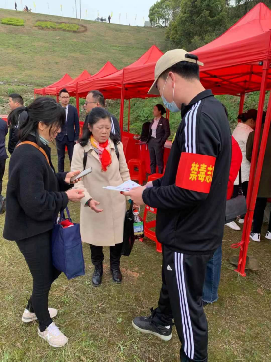 麻塘办事处禁毒专干及禁毒志愿者抓住此次盛大活动人流量大的契机,在会场入口处通过禁毒展板的摆放、横幅张拉、宣传册的发放、有奖知识问答等形式,进行相关禁毒知识的宣传普及。共发放宣传册300余份,对共计700余人进行相关禁毒知识的普及。