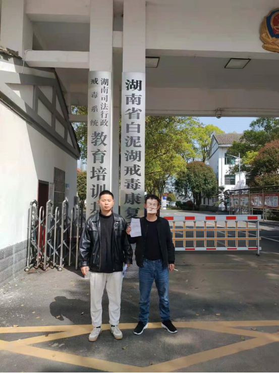 3月24日,公田镇禁毒专干付晨鹏、周凯协同强戒人员彭某父亲来到白泥湖戒毒康复所,落实“出所必接”。