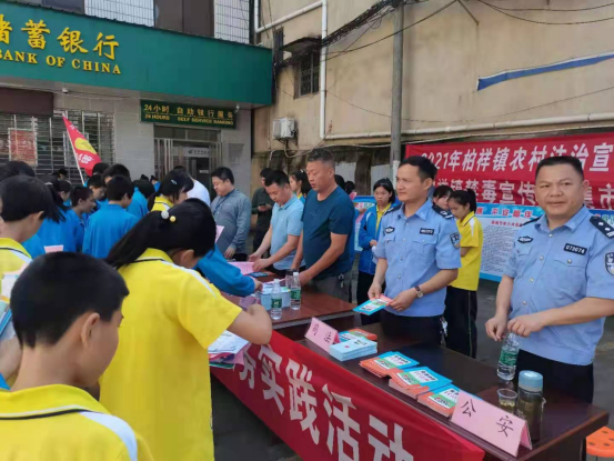 5月27曰,柏祥镇禁毒办联合公安、司法、综治、市场监督、电力、林业等部门在柏祥镇邮电局前组织了以"健康人生 绿色无毒一一庆祝中国共产党建党100周年"为主题,以《禁毒法》宣传及禁毒宣传“六进”为目标的宣传活动,活动现场及交通要道悬挂宣传横幅十五条,宣传展板24块,发放宣传册、页3800余份,现场群众踊跃领取宣传资料,本次活动受到了干部群众的一致好评。