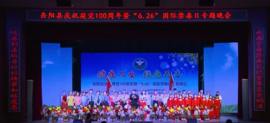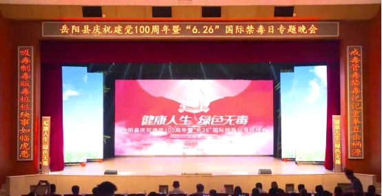 为进一步增强全民禁毒意识,营造浓厚的全民禁毒宣传月氛围。6月25日晚,由岳阳县禁毒委员会主办,岳阳县禁毒办、县禁毒协会及县文化旅游广电局承办的庆祝建党100周年暨“6.26”国际禁毒日专题晚会在岳阳县花鼓戏传承剧院举行。岳阳县政府办主任王靖、县禁毒办主任任畅、县禁毒协会会长龙生光、县禁毒委员会各成员单位负责人及县禁毒协会副会长共200余人参加现场活动。