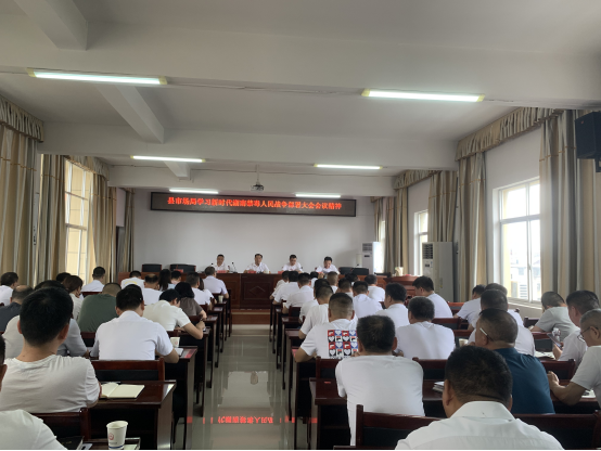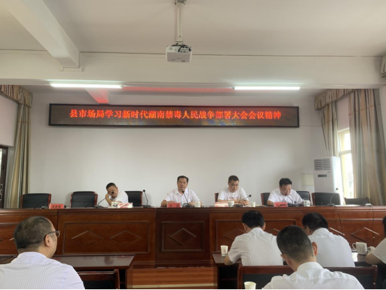 6月30日,县市场局组织全体班子成员、中层以上干部集中学习新时代湖南禁毒人民战争部署大会会议精神,研究部署今年禁毒工作。县市场局党组书记、局长刘遂主持会议。