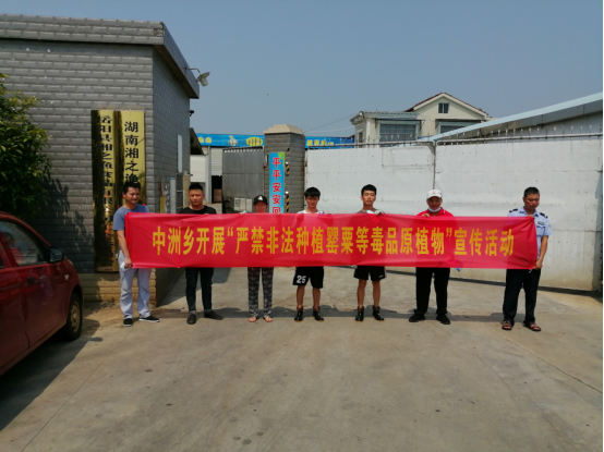 为进一步普及禁毒知识,严厉打击非法种植毒品原植物案件的发生,提高群众毒品防范意识,8月3日上午,中洲乡禁毒办联合派出所、司法所等部门,开展“严禁非法种植罂粟等毒品原植物”宣传活动。