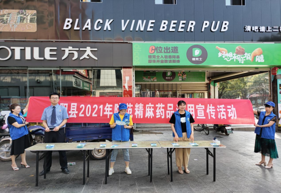 9月16日上午8时,岳阳县禁毒办联合县禁毒协会、县卫健局在天鹅路东方圣世广场开展防范麻精药品滥用主题专项宣传活动,本次活动旨在提高群众对药物滥用危害性的认识,拒绝药物滥用。